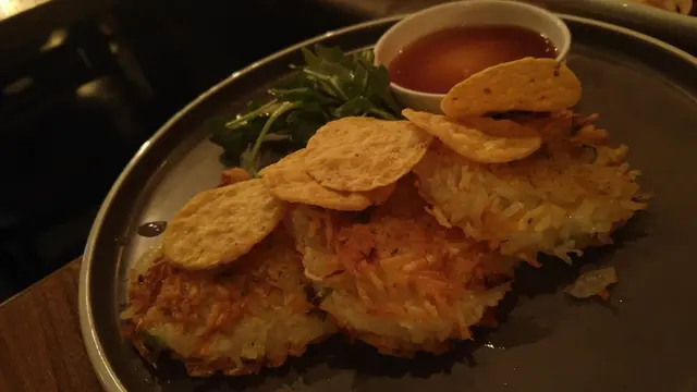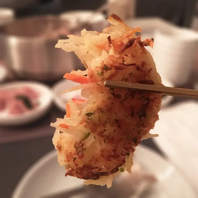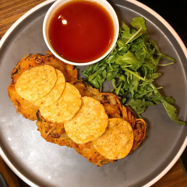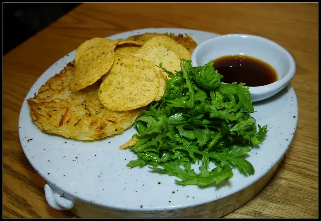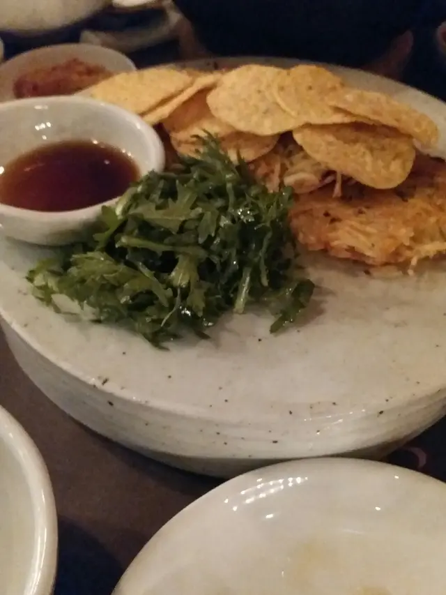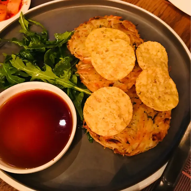 今日到灣仔行街搵食,路過利東街,正好有唱歌表演,所以我同老公就順道找了台前面的一間餐廳坐低慢慢欣賞。起初看見這間餐廳以為是一間西餐廳,再看看餐牌,看看中文的餐廳名,原來是韓式的。我們還成功要求坐了窗口位,看著表演,看著外面遊閒的街道,十分舒服。點菜後,每人會有3 款前菜開開胃,有海帶,蓮藕,當然最重要有泡菜,3款前菜都醃得不錯。韓國菜式當中我最愛石頭鍋飯,所以是必點的。這裡的傳統五色石頭鍋飯,顏色好吸引,有翠玉瓜絲,冬菇絲,紅蘿蔔絲,木耳絲及海帶,飯面上還有一隻流心蛋,將流心蛋篤穿,將所有材料撈勻,再加點韓式辣醬,正呀!如果多少少飯焦就更加好了。薯仔老公要求食香煎韓式薯仔脆餅,薯仔餅有一絲絲的薯絲,另外混合了一些紅蘿蔔絲,煎得脆卜卜,而不油膩,點上少少醋汁,更惹味。另外再點了一客香烤蒜粒醬油雞翼,起初以為蒜頭只用來伴碟,但見老公食了整粒蒜頭,他稱蒜頭可以殺菌,煎得香的蒜頭是很好味的。但我還是最愛雞翼吧,醬油雞翼醃得入味,味道帶點甜,煎得香脆。今日這餐美味的午餐配上美好的音樂表演,真係Happy Sunday。…查看更多
