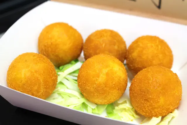有三種選擇,我選了口味略重的麻辣雞,事實證明我沒有選錯。微暖的麻辣雞絕對有四川風味,可惜刈包太細小,而且沒有溫度,這種價錢來說不算抵食~香芋地瓜球 34元套餐 3.5/5分