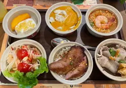 最近先知原來太古城有咁高cp值泰菜🔥仲要全日免加一,人均百零蚊就食到多款高質菜式,絕對值得去食呀@brownlyeat選擇困難人士必叫”𝗔𝘀𝗼𝗸 𝗦𝗶𝘅 𝗖𝗼𝗺𝗯𝗼” ($108) 一個價錢食到6款經典菜式原來個碗都幾深,份量唔少!!🥓炭燒豬頸肉飯 🦀蛋炒咖喱蟹肉飯🦐冬陰功蝦媽媽麵 🍜豬肉船麵🥗青木瓜沙律 🥭芒果糯米飯個人最鍾意豬頸肉飯,豬頸肉燒得好爽好香,好食到想單叫一碟豬頸肉小食😂咖喱蟹肉飯和媽媽麵都有少少辣🌶️食落好開胃惹味,有泰國街頭嘅味道~🥢Set Menu B $98呢個套餐又係好抵食,有惹味嘅「香葉肉碎煎蛋飯」、「青木瓜沙律」和甜品「椰汁班蘭糕」✨冇諗到班蘭糕咁好食!! 暖暖地、軟糯口感帶著椰汁嘅甜和斑蘭葉嘅香,真係想再encore🤤🥢牛肉醉貓炒河 ($98) 河粉寬身晶瑩 即叫即炒夠鍋氣 微微辣 除咗幾塊牛肉外都有啲蔬菜 整體好大碟飽肚👍🏻…查看更多