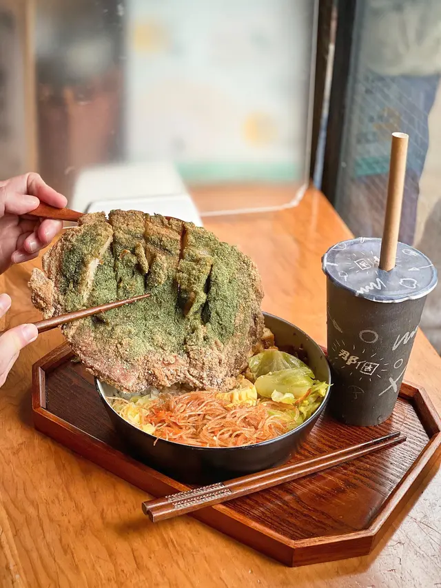 「那個」係其中一間喺大角咀比較出名嘅餐廳,經常都大排長龍,以前喺大角咀附近返工,都有食過一兩次「那個」嘅外賣,當時覺得炸嘢外賣腍咗無咁好食,但都已經係幾年前~最近去開大角咀就試一試堂食,但係講真就有啲啲失望~ 因為大部份嘅炸物都好油,食完都幾膩🥲 不過勝在分量偏大,都算抵食嘅~ 女仔可能叫少飯都未必食得晒~•🥢 那個滷香雞球便當 $73滷香雞球係台式滷排骨嘅變奏版,即係將啲雞球沾上地瓜粉之後拎去炸,炸完再滷~就咁睇整法會以為啲炸皮會腍晒,但原來都仲有少少脆👍🏼 炸皮有少少厚同少少油,整體調味有啲太鹹,要送飯一齊食~ 不過入面嘅雞肉好Juicy,而且大大嚿好厚肉,食落大滿足🤤 便當仲有幾款小菜:炒冬粉、炒椰菜、炒蛋同埋玉子燒,印象中炒蛋幾好食👍🏼但係玉子燒就唔係幾啱食,質地好實同埋味道太甜🫣•🥢 香酥排骨便當 $75呢個炸排骨真係好大塊,所以上菜嘅時候的確幾震撼~上面灑咗好多椒鹽粉,所以食落都幾鹹,真係要配飯/嘢飲先得~ 排骨嘅炸皮好似比炸雞嘅薄少少,但係炸排骨就有少少皮肉分離,同埋入面嘅肉比較薄,食落都比較乾,再加上嚿骨都幾大嚿,食落就無食炸雞球咁啖啖肉咁爽~ 所以我同朋友都一致認為炸雞球比較好食~•🥢 香酥魷魚足 $68因為真係好鍾意食炸魷魚鬚,所以就叫咗嚟試吓~ 魷魚鬚嘅炸衣同頭先食嗰兩款嘅有啲唔同,表面光滑啲同再薄身啲嘅,上面都係灑咗超多椒鹽,極重口味,而且好油,仲有啲油膱(益)味😵‍💫 雖然魷魚嘅份量幾多,但都不太推薦~當晚仲有啲小插曲,第一碟嘅魷魚鬚係明顯炸到過咗龍,表面好深色仲有啲燶,我同朋友食咗一件覺得味道幾燶,所以就同侍應講,佢哋都有換另一碟畀我,不過就換成好多魷魚鬚嘅頂部,即係厚肉啲嘅部份,個人嚟講都係鍾意魷魚「鬚」多啲😬•🥢 愛文芒果冰茶 $36🥢 臺南鳳梨冰茶 $36兩款嘅茶味都不錯,但係啲水果味糖漿都有啲啲藥水味🫣下次可能飲返奶茶/純茶~…查看更多