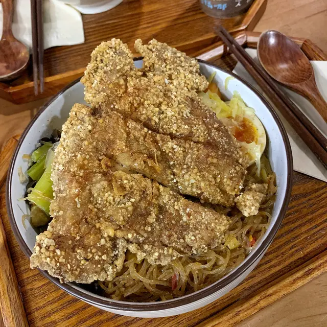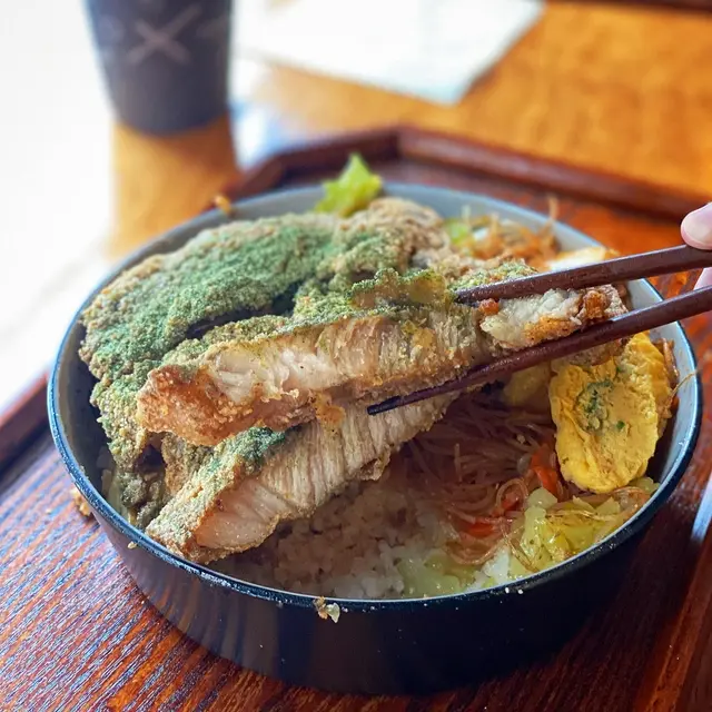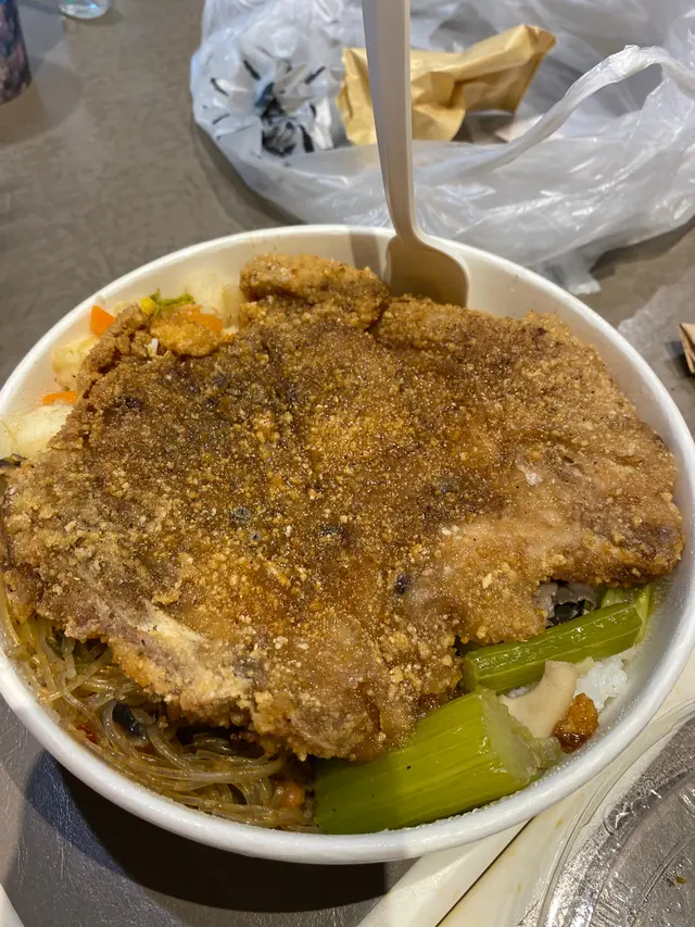 由佢未搬之前仲係細鋪嘅時候就已經開始食,第一次食完已經覺得好味。到後期有越黎越多人介紹,每次中午時段經過依間餐廳都必定見到有人排隊,所以想堂食嘅話有時都係碰下運氣。今次12點15左右黎到見前面得三組客人排隊,諗住排下,結果一排就排左超過半個鐘先有得入,果然係人氣爆燈😂 不過喺出面排緊隊嘅時候已經會幫客人落定單,所以入到去坐左5分鐘左右就已經有得食。我之前每次黎基本上都係食滷排骨便當,係我個人中意嘅口味,不過我覺得水準有時有啲飄忽,試過食一兩次,啲排骨比較實,唔知係咪煮過頭。但因為聽朋友平時講話中意食香酥排骨,所以今次諗住一於試下。佢有三款口味(鹽酥、海苔、香辣)可以揀,第一次試就緊係揀返經典嘅鹽酥。依個便當$64,會包埋野飲,不過得三款免費,如果想飲其他例如珍奶嘅話就要另外加錢。不得不提佢嘅排骨真係超大塊,炸得非常香脆,而且肉質都好嫩,唔會好實,味道係幾好食嘅,不過同滷排骨相比,我覺得香酥排骨會乾身啲,尤其係佢本身無汁,但佢啲調味都做得岩岩好。除左排骨之外,個便當另外仲會有5款配菜,日日唔同。咁岩今日有玉子燒,有啲驚喜,而且都幾好食。不過坦白講佢嘅飯因為無汁,所以會有啲dry,要連埋啲配菜、排骨一齊食先得。因為我今次唔記得叫少飯,最後有啲飯都食唔哂淨低,但我覺得香酥排骨係好食嘅!食完成個便當真係超級飽,而且都好滿足🤣…查看更多