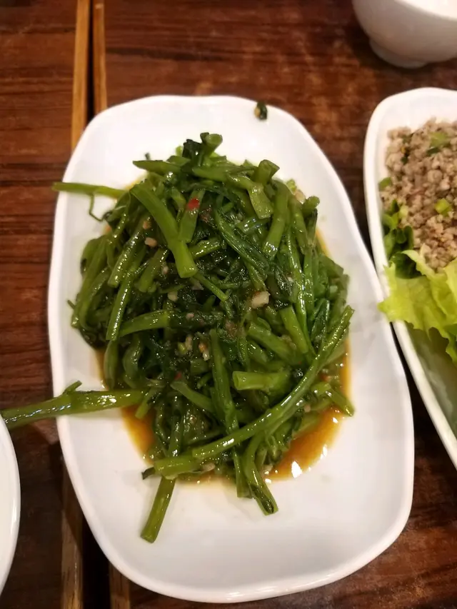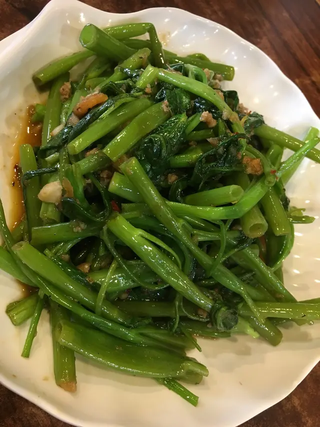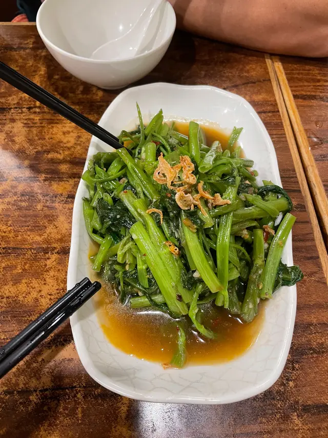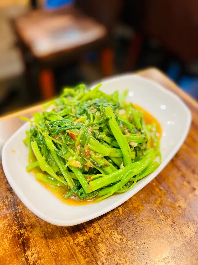 :)幼滑粉身,炒得好乾爽,獨特多了一種泰式香味,肉片好軟霖爽滑,濃鮮香肉味馬拉盞炒通菜