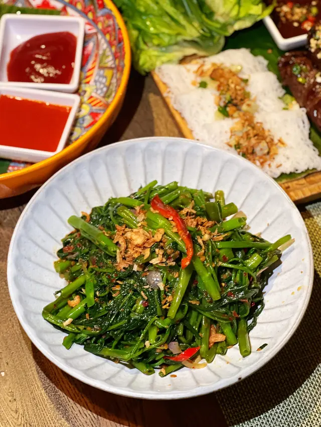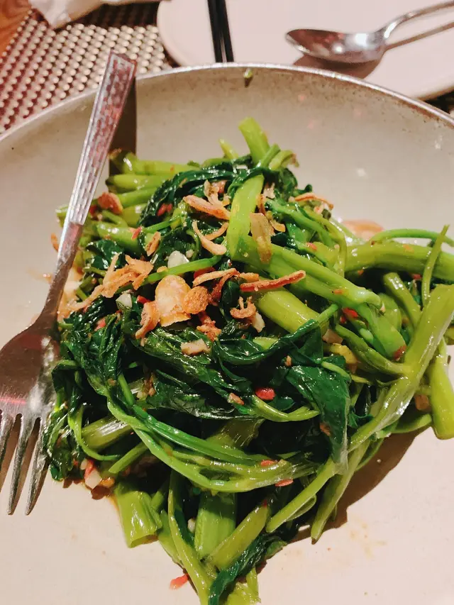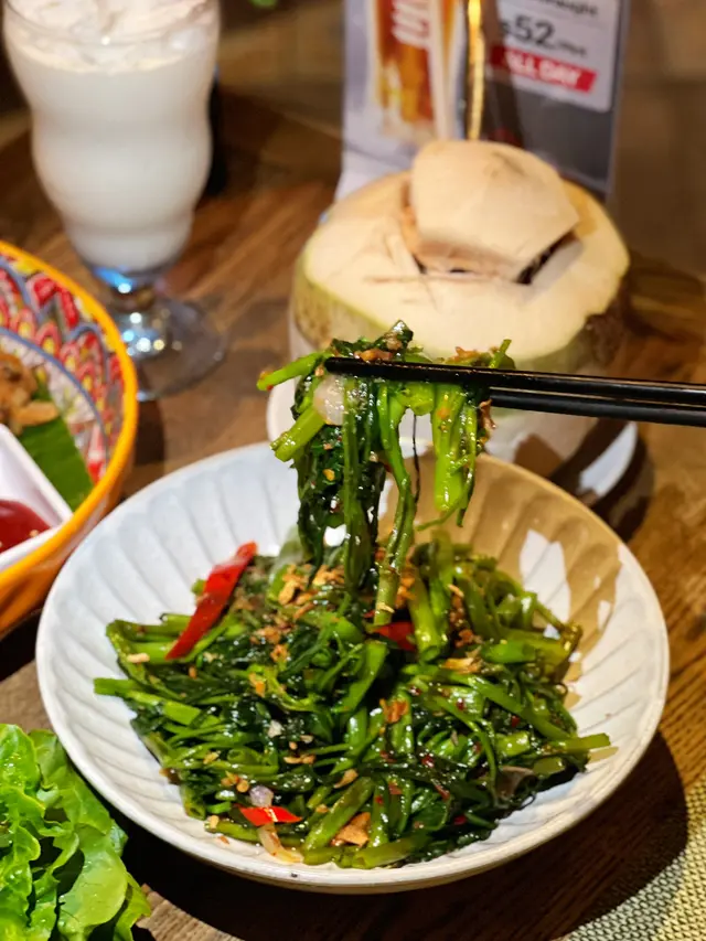 馬拉盞通菜翠綠爽脆,鹹香與蝦乾微辣,鑊氣十足