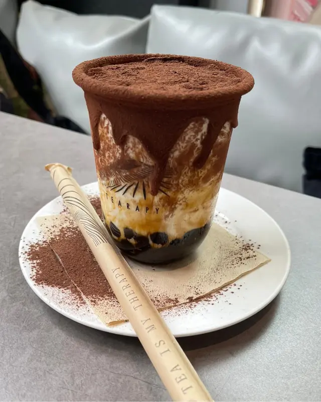 黑糖鮮奶又係大大杯,會變沾上忌廉,然後灑滿朱古力粉,形成「髒髒」嘅效果。鮮奶配上粒粒黑糖煮起嘅珍珠,撈勻之後唔會好甜,粒粒珍珠啜入口,口感好治癒,又一招牌茶飲成品!📌《茶聊》同以前相比,轉換左啲枱凳格局,變成更加有型有格,感覺更加休閒自在。樓上Cafe嚟講可以做到今時今日都真係買少見少,得閒上嚟歇一歇,喝一喝茶,聊一聊,絕對可以令人叉足一日電🔋。…查看更多