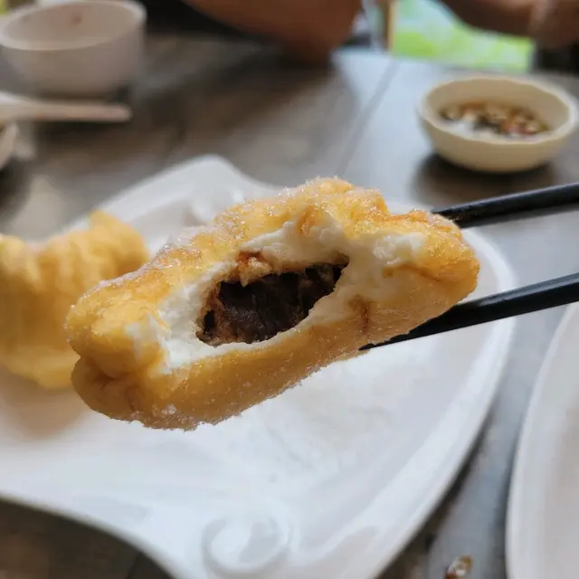 老掌櫃東北菜館喺荃灣海之戀商場,除咗提供經典嘅東北菜,仲有意想不到嘅靚景可以慢慢欣賞!我哋夜晚到達,見到戶外區冇乜人坐,想靜靜地傾吓計,所以特登叫職員安排咗露台位。行出去一刻即刻被驚艷,竟然可以欣賞到海景夜色,呢個景觀絕對係額外驚喜,邊睇景邊食東北菜,氣氛一流!-北京填鴨 (半隻)因為怕食唔曬,所以淨係點咗半隻試吓。鴨皮烤得香脆焦香,每一啖都感受到滿滿油脂嘅香味,配埋薄薄嘅餅皮、清爽嘅青瓜、京蔥同甜麵醬,一啖包埋一齊食,味道層次豐富!以百幾蚊嘅價錢嚟講,呢份北京填鴨絕對抵食,性價比非常高,值得推薦。-紅油抄手呢款紅油抄手表現唔錯,餛飩皮薄滑,包住嘅豬肉餡鮮嫩多汁。紅油調得恰到好處,唔會過份油膩,辣度適中,帶出少少麻香味,非常開胃。-老醋海蜇頭海蜇頭非常爽口彈牙,每一啖都帶有清新的醋香,開胃又清新。不過,配搭嘅青瓜略嫌冇乜味道,少咗啲驚喜感,喺整體表現上扣咗啲分。-高力豆沙呢道甜品係我嘅驚喜發現!外層炸得金黃酥脆,表面均勻沾滿砂糖,咬落去帶少少煙韌口感,內層嘅豆沙餡甜度控制得剛剛好,唔會過膩。…查看更多