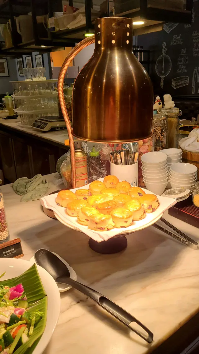 又要鎚扒,又想食自助餐,我們來到一家美式西餐廳食半自助午餐。自助沙律吧的選擇約莫十幾款,有點窄位,不過每樣皆很新鮮精美,吸睛度不俗。菜蔬類有羽衣甘藍、薯仔、木瓜沙律等,而肉類有煙鴨肉及魷魚沙律,澱粉類有長通粉,不用自行調製醬汁已令人打開胃口。餐湯乃蜆肉忌廉湯,綿滑帶奶香,我們每人各喝了兩碗!價錢方面就取決於主菜的決定。小人的烤肉拼盤承惠二百二十三個大洋,而友人的煎盲鰽則是一百九十元。燒雞髀的皮香脆,雞肉仍嫩;安格斯牛扒三成熟,滑嫩有肉汁,蘸點牛扒汁更加可口!墊底的薯蓉奶滑細緻,用來襯烤肉無縫接合!沙律以外,甜品也是任取的。但小人直到此時才記起網友提及鬆餅是必吃的,所以連同甜品一起吃。鬆餅細細粒,塗些牛油和士多啤梨醬,酸甜牛油和著鬆餅,滋味非凡!西瓜鮮甜,還有一滑入喉的豆腐花,完滿至極!最可惜的是吃到此處已甚飽矣,未能試到搶手的西餅!…查看更多