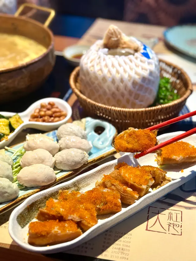 🧨𡃁妹鐘意打邊爐,熊妹今日就揀左間佢屋企附近,歷史悠久的《大紅袍》打個靚料邊爐!📌荃灣百悅坊成棟都係食肆,係荃新天地對面,位置都好易揾。📌荃灣店的《大紅袍》個場超大,裝修帶有宮庭感覺,好有設計。大圓枱可以圍爐取爐,有方型枱適合少人邊爐。📌唔係放題形式,多款火鍋材料選擇,仲有小食同刺身。