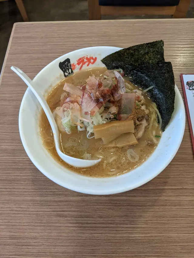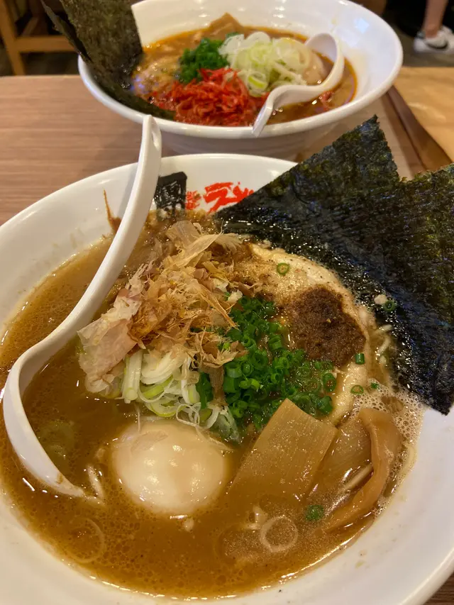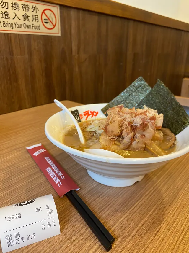 簡單幾句可以總結沒有過人之處,價格不是特別便宜,沒有重遊的理由首先店舖是採取自助點餐模式,顧客自行在店外的自動拉麵販賣機付款點餐該機只接受現金付款,但看見店內也有其他付款工具的收款機,相信如果顧客沒有足夠現金也可透過店員點餐及用其他付款方式店面不太大,但座位倘算寛廠有三行4方枱,每行也有6個座位,另有吧枱位,在廚房前,有3—4個座位我與友人各點了一碗拉麵我點的是魚介湯底有淡淡鹹香,不會很濃郁,也不太油膩 麵條點了偏硬,對我而言剛好,煙韌但不彈牙麵條容也不掛湯薄切叉燒口感軟腍不韌不嚡脂肪分怖平圴配料有海苔,味筍,雞蛋海苔未浸入湯已經是淋掉, 不脆味筍也爽脆雞蛋半流心,但沒有蛋味友人點的是黑蒜油拉麵湯底較濃郁,其實是比較鹹也有黑蒜油香其他配料同上除了因麵條點了適中, 所以比較淋身,不太合友人口味外其他配料評論同上…查看更多