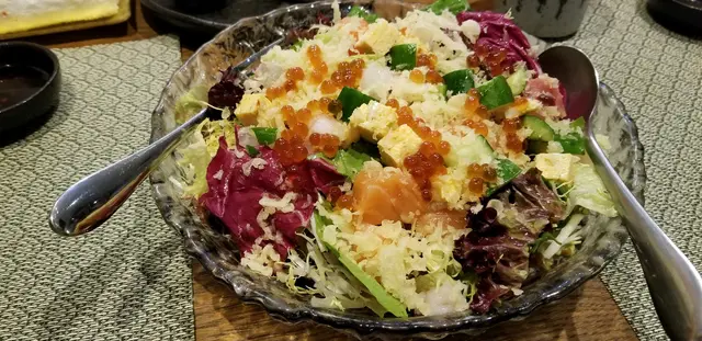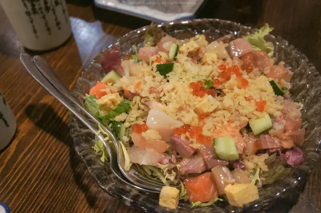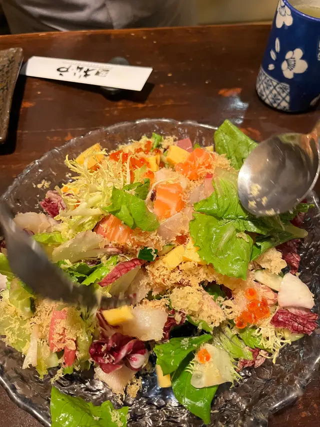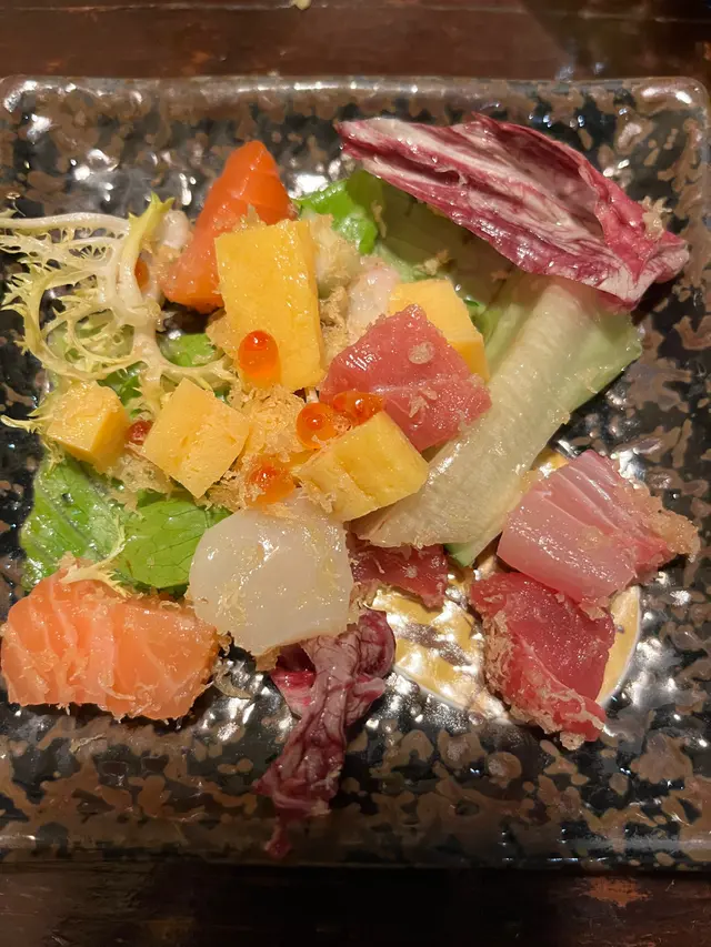 三號波呢晚,訂了尖沙咀餐廳 - 鮨處松戶 食晚飯,在彩星集團中心8樓。而上去餐廳過程算特別,由地下上樓要5樓出一出𨋢,在另一邊轉另外一間lift按八字樓先到,在5樓一出𨋢就見到大廈嘅owner設計既忍者龜figures 😆 8樓出𨋢的左手邊就是鮨處松戶餐廳。到了餐廳同店的人傾開計,得知餐廳是2006年8月開的,今年今個月已是16年週年了🎂 恭喜恭喜🎊🎈今晚首先黎的前菜係咸咸酸酸的帶子裙邊,醒下胃,喚醒左食慾😉魚生沙律用料好豐富,有三文魚魚子、刺身有帶子、吞拿魚、三文魚、鯛魚,食前撈起😆雜錦刺身拼盤係今晚的重點,全部刺身都好新鮮,食得出海鮮的鮮甜。熟食方面餐廳都整得好出色:日式炸豆腐內心都是好嫩滑,吹彈可破😆好食日本華美雞翼是即燒的一對雞翼,華美雞翼好有雞味,絕對有別於我們平時餐廳食開的西班牙急凍雞翼。雜錦天婦羅當然唔少得嘅有炸蝦、炸南瓜片、炸紫茄子片、炸青椒。炸蝦外脆內嫩,仲是刺身的熟度