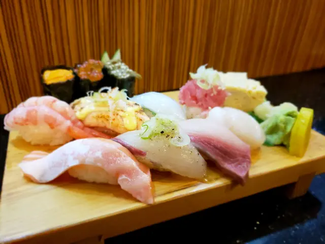 好耐無食壽司喇,黃店黃店黃店💛鋪頭唔係好大,好好彩坐到個2人位店員仲好好咁揾咗個位幫我哋放好扎花·叫咗個”鮮壽司” set lunch ($155)。d壽司都幾新鮮幾好食😋,lunch set 有12款壽司其實都算抵食,下次要encore😍因為2個人share食所以叫佢2件火炙三文魚腩同帆立貝食,2款都好好味👍🏼·因為落雨所以我哋再叫多樣雞軟骨食,不過就多粉咗少少走嗰時因為仲落緊雨,所以店員好擔心我扎花,追住比個袋我遮住d花,唔好淋到,太有愛🥰…查看更多