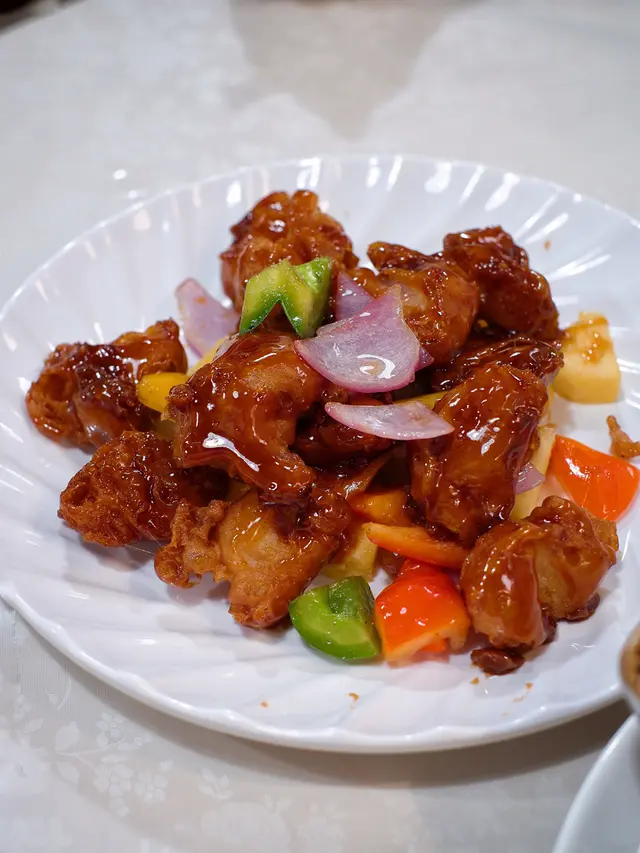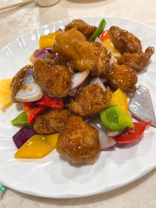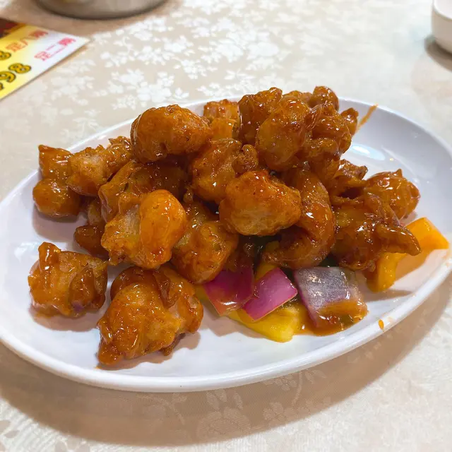 2023.6.23 星期五 8:30pm星期五晚飯時間,好多人聚會,幸好在門口等一兩分鐘就有兩個位。••••••••••••••••••••| 鮮菠蘿拔絲咕嚕肉 | $158🔥🐖🍍🫑拔絲甜得來也很脆,吃到尾都可以保持脆度。咕嚕肉大塊有咬口又夠腍,菠蘿好新鮮,三色椒炒得夠爽。酸甜度調教得恰到好處,好開胃,讓人吃不停口。| 蝦乾蒜蓉蒸勝瓜 | $98🦐🥒🧄這道菜是來清清喉嚨的。擺盤好看,勝瓜蒸得好腍,入口融化,基本是沒有什麼味道的,但有大大隻又鹹香的乾蝦,點了豉油,完全提升了美味度。| 金沙鮮魷魚 | $148🔥🦑🥚外層佈滿鹹蛋黃碎,炒得好均勻,炸衣鬆脆,有少許油膩。魷魚新鮮,也算不錯。吃金沙鹹蛋黃為主,好邪惡的一道菜。前菜 $10白飯 $12••••••••••••••••••••食物有質素,味道和賣相都很好😋冷氣夠涼,夠氣氛,適合聚會。店舖職員都是一家人,好忙好趕,不過反應很快👍🏻…查看更多
