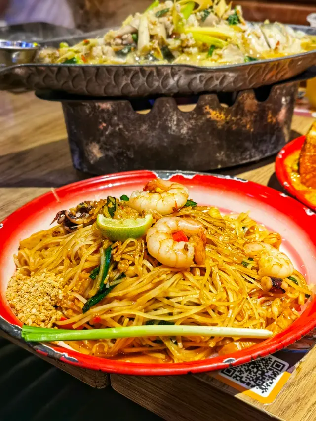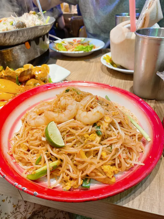 約朋友喺大角咀食飯🍽,原來呢頭都幾多泰國菜~其中呢間泰嘟嘟好似評價最高😋😋~現場睇真係好多人等位👯♀️👯♀️!泰國嘢必食炒椰菜苗🥬,份量都ok~椰菜苗炒得夠熟,唔會一陣草青味🌱~馬拉盞炒落去好惹味香口~另一個我見好多人點嘅就係泰式鐵板蠔仔炒蛋🥚,有啲似潮州蠔烙~佢嘅蠔新鮮又大粒🦪,而且數量都多~喜歡食蠔嘅人一定滿意呢個餸🤗~店員推介嘅有呢個炭燒豬頸肉🐷~上檯連埋個炭爐上,一路keep住熱🔥~佢切得偏厚,所以油脂好香,而邊邊燒得有啲焦脆~另一樣泰國嘢必點當然係炒金邊粉🍝~佢哋炒得好乾身,連碟底都無乜油,真心唔錯💝~佢最特別係最入面嘅座位真係Tuk Tuk咁樣🚃,勁有特式~而且嘢食好味😋,價錢又合理🤑~侍應仲會推介菜式,又會叫我哋唔好點太多,怕食唔晒😍~咁好嘅餐廳,實在要大推👍!…查看更多