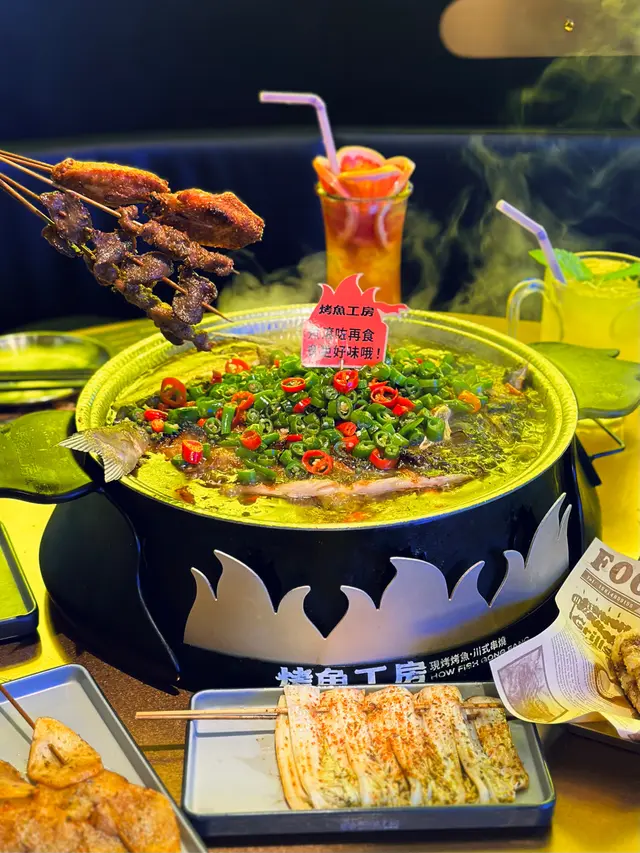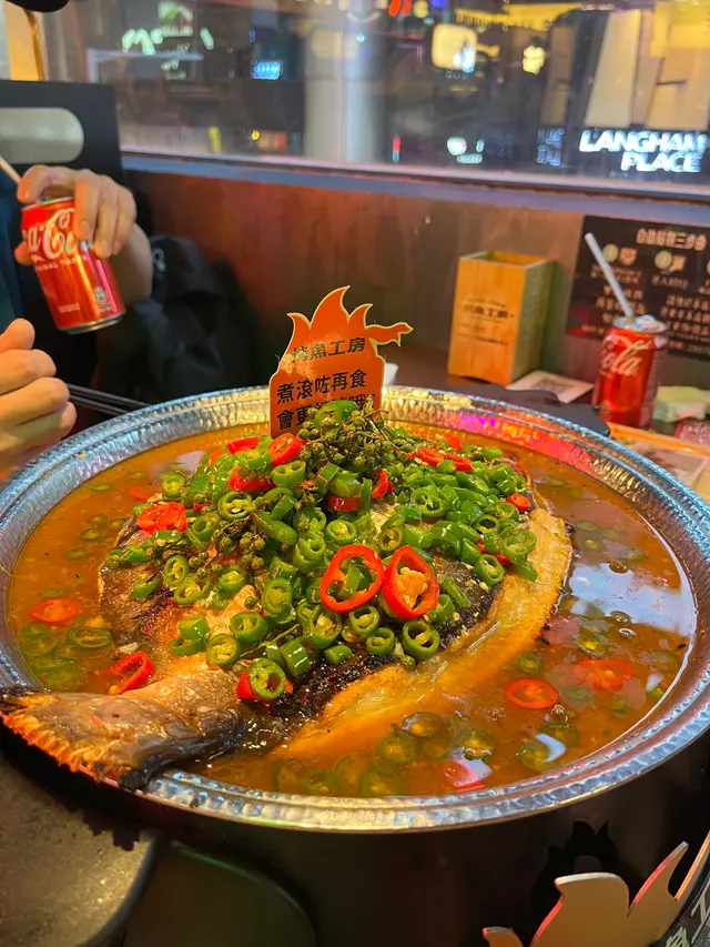 今次介紹人氣烤魚餐廳,由四川師傅研發嘅獨特口味配方,喺香港都可以食到正宗嘅川渝烤魚味道🤤我哋三個人嗌咗個好抵食嘅 SET B 宵夜套餐,價錢只係$399❣️1. 鮮青椒味烤魚👉🏻江團魚(+$40)十分推薦江團魚,肉質嫩滑,重點係冇乜骨!🥹對我呢啲唔鍾意噒骨嘅人嚟講,真係好加分🙌🏻我哋order咗小麻小辣,湯底辣度啱啱好,聞落好香好惹味,令我哋食唔停口,一啖接一啖😋個人建議加配火鍋粉(+$20),同麻辣湯底真係好夾😝煙煙韌韌又索咗啲湯汁又抵食~2. 串燒宵夜套餐包埋自選串燒,我哋揀咗烤羊肉串、烤雞中翼、烤雞腎串、烤韭菜、烤娃娃菜、烤薯仔片,每款串燒都沾滿香料,有辣椒粉、孜然粉,食落好香口🔥3. 紅糖糍粑仲包一款自選小食,我哋揀咗紅糖糍粑🥢糍粑表面淋上紅糖漿,點一點黃豆粉再放入口,感受佢嘅香脆軟糯😚如果紅糖多啲會開心啲~4. 飲品(每款正價-$10)🍎至尊水果茶(+$33)水果茶勁足料!有蘋果、香橙、西瓜、藍莓、火龍果,當飯後生果食都冇問題🤣🍊金桔青檸特飲(+$26)勁大杯💯酸酸甜甜好解渴😆🍹冰爽葡萄紅柚(+$26)賣相好有心思,重西柚味又唔太甜~…查看更多