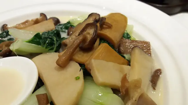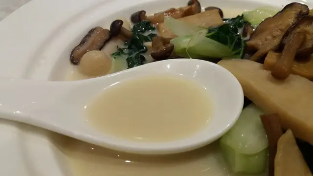 今天約了廣東道工作的朋友食飯,朋友想食中菜,就來到附近的酒樓。這裡原本是結婚儀式的場地,多年前曾在此觀禮!現在則變成中菜館了。就座後,點了普洱茶及開水各一壺,洗過餐具,就要計劃今餐食咩餸。 可是二人在中菜館用膳,點菜方面十分頭痛。想多嚐不同款式,但又怕份量太多。大家正在猶豫之際,職員呈上二人套餐餐牌。  二人世界套餐,有前菜,餐湯,小食,肉類,青菜,澱粉質,甜品。  好似西式套餐,可以嚐到不同的菜式,不用想,不用煩。於是選這個二人世界套餐!套餐還是三免:免茶免芥免加一,即是600元有找。 開胃前菜先上冰梅涼瓜拚椒鹽蟲草花  涼瓜表面色深又多皺,是雷公鑿。脆口的涼瓜仍帶苦味,但有了梅的酸味作中和,反而成了一道開胃菜。椒鹽蟲草花 一般是蟲草花蒸雞,現在卻是椒鹽蟲草花。剛才嚐過甘味的涼瓜,味蕾打開了,輪到椒鹽蟲草花。黃色炸皮有蛋香,表面的椒鹽鹹辣,反而襯托出蟲草花淡淡的甜味。日本姬松茸秘魯瑪卡燉螺頭茶壺湯 以茶壺呈上,有別於一般中菜以大盅一枱一窩。對我倆來說,真是十分新奇的事呢!有茶壺有茶杯!  螺肉滋陰,姬松茸也被推崇為保健食品。但聽說瑪卡有另類的神秘功效。反正都變燉湯了,先試試吧! 白色內膽的茶杯,便於觀色。湯清無油,呈金黃琥珀色。 再看燉湯的材料,有螺肉,姬松茸,一片片的瑪卡,還有肉碎,雞腳,紅棗。   燉湯甘甜濃郁,是各款材料的精華。湯渣也不能放過,螺肉與姬松茸的清甜,而瑪卡本身味道不太重。香煎日本元貝拼鵝肝醬窩粑   厚身日本元貝,比手指還有粗。 脆脆橙色窩粑上方啡色的配料,是黑松露及細碎的菇菌類。不是餐牌所講的鵝肝醬。 嚐過黑松露後,來一口沙律,讓味蕾為下一道菜作準備。燒汁安格斯牛粒  安格斯牛肉粒與雞脾菇的大小一致,受熱平均,更易控制牛肉的熟成度。牛肉表面仍有絲絲紅色,中間仍是粉紅色,大約是牛扒的7成熟。安格斯牛以肉質為主,脂肪少,牛味當然重。 爽脆的雞脾菇,配上鹹中帶酸的澆汁,味道很夾。  鮮魚湯野菌浸菜苗   有白菜苗及几款菇菌類,但個人覺得魚湯才是主角。鮮甜的魚湯,即使一匙一匙地品嚐,也不會偏鹹。而白菜苗纖維細嫩,無需使用太多牙力。健康紅米珍珠雞 珍珠雞以小鍋呈上。糯米混有紅米,上方的木魚絲還會郁(因熱力而捲曲)呢!乾身糯米粒粒分明,没有油光,感覺不油膩,看來很健康。糯米煙韌,口感較實在。曾遇過珍珠雞糯米雞,糯米煮到又爛又腍身又油膩(反曬光),根本嚐不到糯米應有的質感。 中間餡料,有肉粒蛋黃有菇菌粒粒,五香粉味不重,味道較清淡,加上肉粒脂肪很少,整體感不油膩。剛才的小食前菜燉湯主菜,己有一定份量。但是珍珠雞太吸引了,我倆竟然可以把珍珠雞消滅。 夏威夷木瓜奶凍 飯後甜品   這一頓六百元有找,朋友是信和會員,順便可換領商場的新春禮物呢!…查看更多
