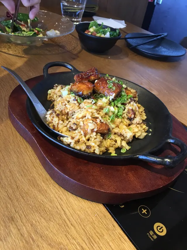 很嫩滑。之前我同事也來過這裡,我同事極力推薦我吃這道菜,炸粟米塔的外型十分討好,上面有一球香草味雪糕,要盡快吃掉,不然會很快溶。炸粟米我還真的第一次吃!脆脆的很香口,配合裡面清甜的粟米,又莫名其妙的合適。鰻魚炒飯也說不上是太差,有數顆鰻魚在炒飯上,滑滑的,也有口感,炒飯的味道很濃,只是有點兒偏鹹,跟我期望的不一樣,有點失望。不過炒飯也有一個優點,就是用鐵板盛載著,放了很久我們才吃,溫度也沒有完全變冷,還有餘溫