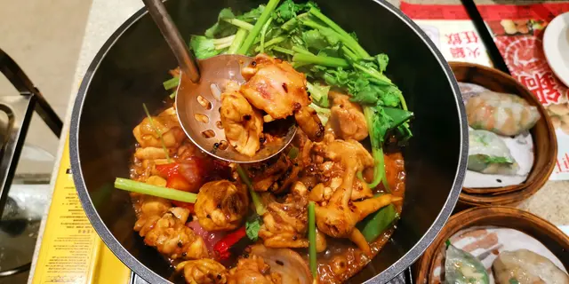 近來多咗去長沙灣搵嘢食,因為發覺啲two被時真係開咗好多餐廳,只不過今日好想食雞煲,我想OpenRice搵吓搵吓就搵到呢間餐廳。兩個人叫咗一個雞煲,平時食開一品雞煲,都唔係成日試一啲新嘅,不過呢間果汁除咗青椒味比較重之外,其實都幾啱我口味。佢啲雞嘅大細切得非常好,骨亦都唔會太碎,啲汁啱啱好可以煮入啲肉道,食幾上黎就唔會汁還汁,肉還肉,真心俾個like佢。好欣賞佢個雞煲入邊有好多洋蔥,可以平衡返個醬汁同啲雞唔會太鹹,而且食完雞煲打邊爐嘅湯底都好清新。呢度嘅海鮮拼盤嘅海鮮都幾新鮮,擺渡成枱都係餸感覺極度滿足。估唔到叫雞煲都會有點心拼盤餸,拼盤包括潮州粉果、菜苗餃同燒賣,畢竟呢間餐廳都係食點心為主嘅,佢啲粉果嘅水晶痞做得非常煙銀,亦都唔會太厚,入邊啲料好足~仲有飲品任飲,呢個椰汁幾特別。…查看更多
