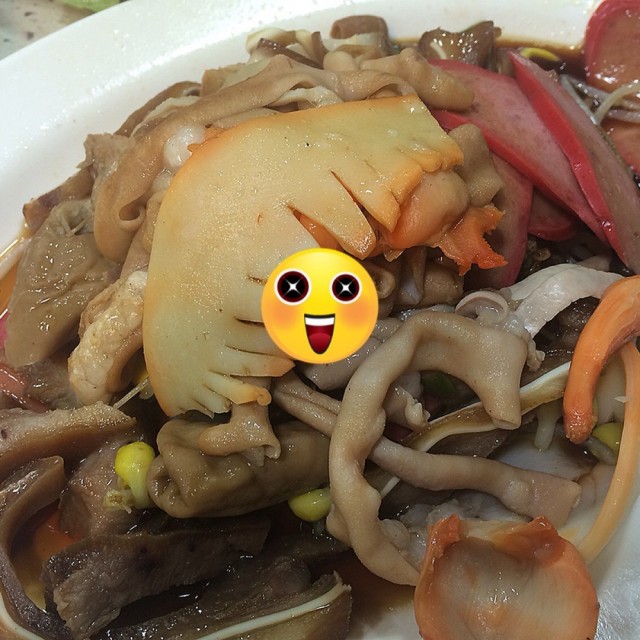 滿300,送鹵水拼盤有芽菜放底,紅腸,鵝腸,墨魚,豬耳,豬頭肉,豬腸,豬腩片……適合貪心的人,重點是免費的