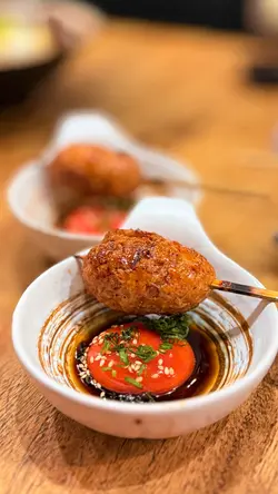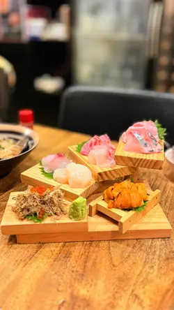 經過門口,就比紅色既燈籠吸引住,餐廳環境充滿住日本風情,牆上掛住日本特色畫作,走日本武士型格路線。木造既燈罩散發出溫暖既光芒,令人感到舒適放鬆.餐廳仲有埋戶外位。黑松露枝豆非常獨特既配搭,香氣獨特既黑松露,巧妙地同枝豆結合,入口黑松露香氣緩緩釋放係口腔中。壽司今次試左2款壽司.分別係三文魚壽司同埋鰤魚壽司,三文魚有相當厚度,口感鮮美,鰤魚肉質緊實,2款都非常新鮮。串燒今次試左3款串燒 - 黑豚腩、鹽燒牛舌心厚切、同埋芝士紫蘇雞胸卷。黑豚腩脂朌同瘦肉既比例恰到好處,咬落去充滿住油脂香,鹽燒牛舌心厚切烤得剛剛好,外皮微焦,入口有嚼勁,芝士紫蘇雞胸卷做法創新,風味獨特,雞胸肉既口感鮮嫩,紫蘇葉既香氣獨特,芝土既濃郁口感為整道菜增添左豐富既層次感。沙律菜類今次想食得健康少少,叫左蟹籽沙律同埋炒野菜,蟹籽既鮮美同清爽既青瓜絲,非常清新,炒野菜即叫即炒,有鑊氣。雪榚窩夫窩夫夾住士多啤梨味雪糕,味道香甜帶少許酸。…查看更多