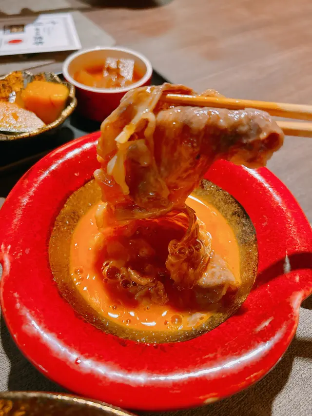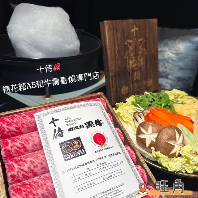 十侍-棉花糖A5和牛壽喜燒專門店位於旺角豉油街,要搭升降機上去,入口有少少難搵。不過,少少困難係阻止唔到我哋搵好嘢食嘅決心。因為突發有事要慶祝,所以六點幾先打去book枱。好彩仲有bar 枱位可以Book ,唔使等位。去到餐廳一坐低就落左set $898的鹿兒島A5黑毛和牛套餐,另外可以加$198 要埋串燒拼同兩杯冇酒精飲品。………………………………………………鹿兒島A5黑毛和牛套餐 ⭐️⭐️⭐️⭐️⭐️套餐$898 包括約每人180g的鹿兒島A5黑毛和牛西冷肉眼、前菜、季節野菜盛合、自家製壽喜燒醬汁、日本蘭王雞蛋、讚岐烏冬或日本米飯 同埋 自家製雪糕。⭕️ 鹿兒島A5黑毛和牛西冷肉眼⭐️⭐️⭐️⭐️⭐️⭐️每人有大約180g嘅肉。肉眼會用一個木盒好靚咁樣裝住,仲會有一張由鹿兒島黑牛黑豚銘柄販売促進協議會發出嘅證書。店員會一塊一塊咁幫你煮好夾落你個碟。肉眼油脂分佈均勻,入口即溶,好好味。180g每人有3大片,好食到唔夠喉。⭕️ 自家製壽喜燒醬汁 ⭐️⭐️⭐️⭐️⭐️店員會先製作一個棉花糖,然後將自家製嘅壽喜燒醬汁倒落棉花糖上面,兩者最後溶為一體,十分特別,係屬於關東風嘅壽喜燒。⭕️ 前菜 ⭐️⭐️主要係海帶漬物,味道口感都麻麻地,而且分量好少。⭕️ 季節野菜盛合 ⭐️⭐️⭐️⭐️盛合有娃娃菜、冬菇、金菇、本菇、豆腐卜、豆腐、大蔥、蟹柳等,食材新鮮。⭕️ 日本蘭王雞蛋 ⭐️⭐️⭐️⭐️⭐️店員會將日本蘭王雞蛋打落一個好特別的金屬容器,再將攪勻好的蛋液打成慕絲狀比我哋點牛肉,十分特別,蛋香味濃郁,口感細滑。⭕️ 讚岐烏冬 ⭐️⭐️⭐️⭐️⭐️烏冬好滑好彈牙,用壽喜燒汁煮到甜甜地,好味。⭕️ 自家製雪糕 ⭐️⭐️⭐️⭐️Vanilla 雪糕,好味。串燒 Set ⭐️⭐️⭐️⭐️⭐️一共有五串,包括翠肉瓜、冬菇、秋葵、雞肉同 雞軟骨。即叫即燒,翠肉瓜、冬菇、秋葵都燒得剛剛好,充分保留到水份同蔬菜的口感。而雞皮都燒到脆卜卜,雞肉Juicy。巨峰提子乳酸梳打 ⭐️⭐️⭐️⭐️⭐️餐廳即調的梳打飲品,甜度剛剛好,不過細杯左啲。………………………………………………十侍用的食材都好高質素,製作亦都好用心。不過,我個人比較喜歡關西風的壽喜燒。如果鐘意食關東風壽喜燒,十侍絕對係唔錯嘅選擇。…查看更多