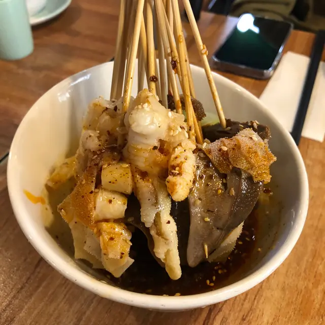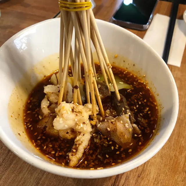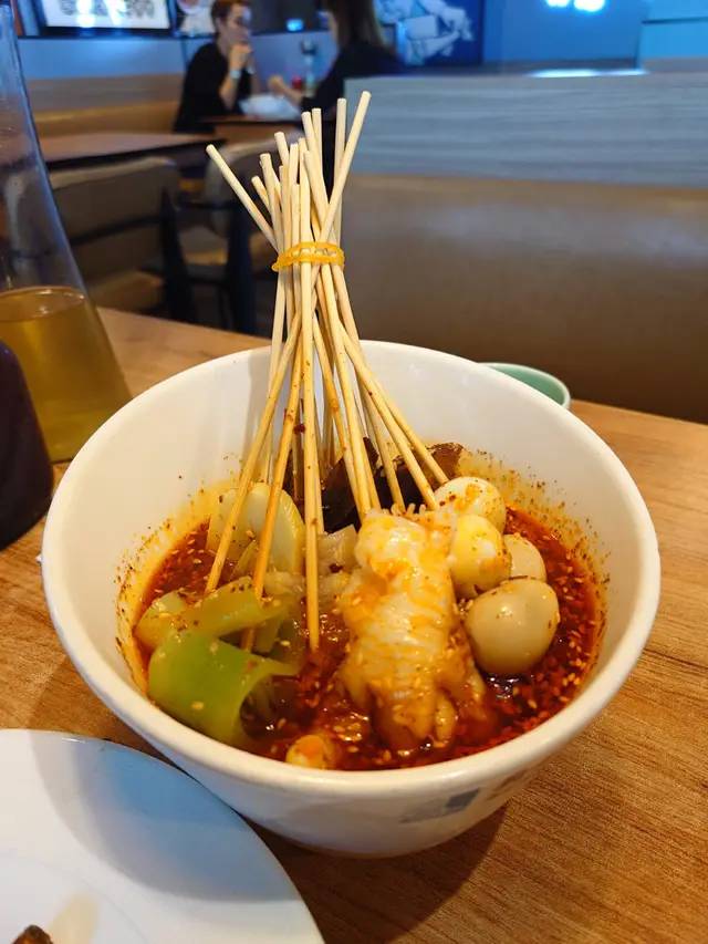 今日同朋友黎試下食廚十三酸菜魚,3個人叫左個2人份加左配菜,有豆腐、午餐肉,豆卜同寬粉, 叫左少辣。 我個人口味覺得酸度岩岩好,唔會太酸,辣度少辣都岩我朋友,我自己就覺得下次可以試下中辣。而主角魚片都有好多,好滑配上啲湯汁一齊食好惹味。我們仲叫左啲涼菜及小食:有皮蛋,麻辣砵砵雞同磁巴。 砵砵雞有牛展、牛肚、鵪鶉蛋、萵筍、雞腎、豬脷、土豆片等 ,我朋友負責食內臟,佢好鍾意食,仲話好好味,辣度會比酸菜魚較辣,而我就伐鵪鶉蛋,萵筍同土豆片,重申一點這些是涼菜,萵筍同土豆片好爽口,辣度又刺激味蕾,真係好正。最後食甜品:雨露均沾即係磁巴,呢個要趁熱食,磁巴煎得好香口,外脆內軟,又唔會癡牙,再配上黑糖, 鍾意食甜食的朋友,這個值得推介👍👍👍