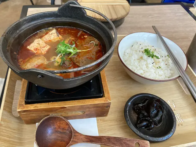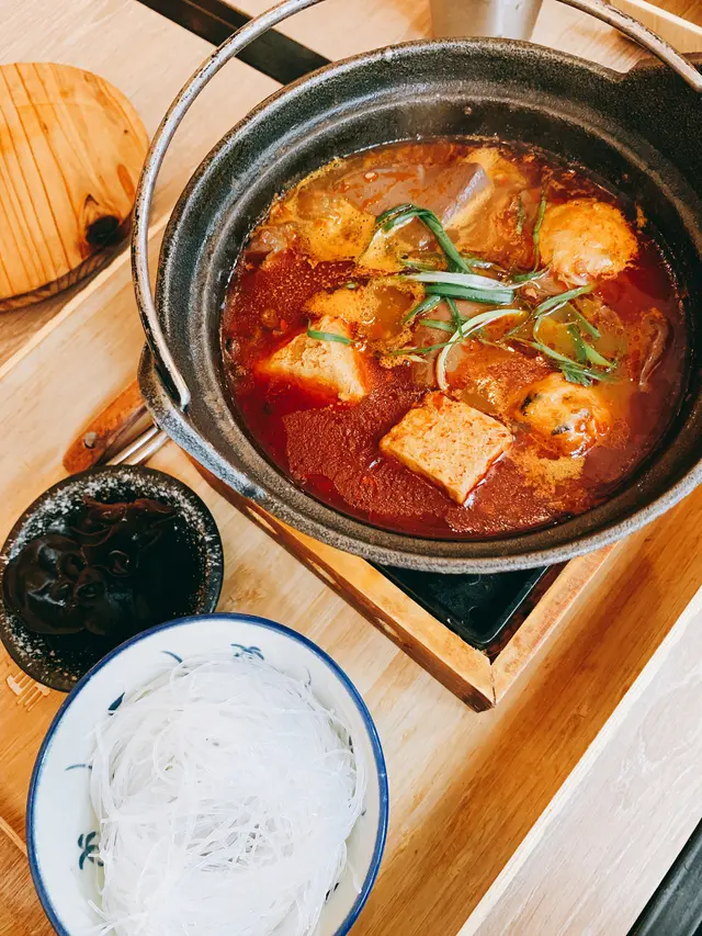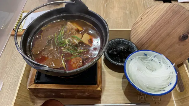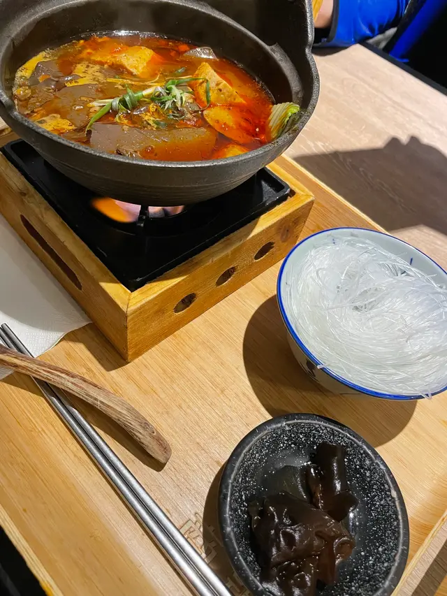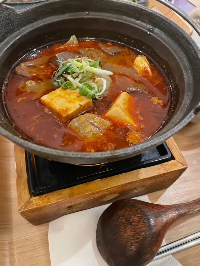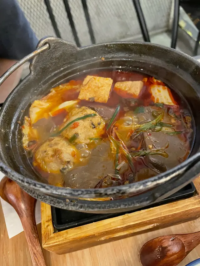 鴨血煲可以揀東粉或者白飯 但係當日因為白飯已經賣晒咁就揀咗東粉 鴨血份量超多 佈滿晒成個鍋 而且每一舊都好大好滑好吸汁 咬落口感彈牙 雖然未去到超辣嘅程度 但對於平時唔係好食得辣嘅朋友 都係偏辣嘅另外配菜仲有豆腐同埋貢丸 全部都係好吸汁嘅配菜  不過鴨血煲準備時間比較耐 大概要等10分鐘先有
