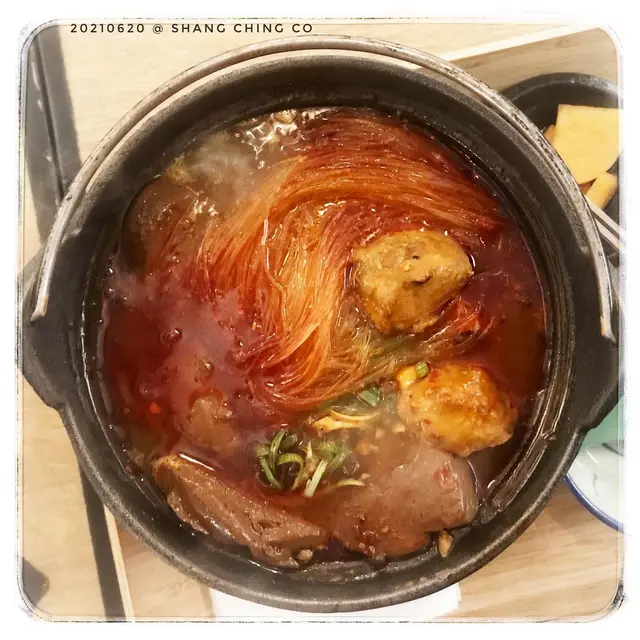 這間位於灣仔的台式餐廳 - 尚青商號 頗有人氣的啊其實剛新開張時已經心動想去,當聽朋友說那時要排隊就等到這刻才去不過星期六下午4點多時間雖然不用排隊,但都有不少客人的呢餐廳在一樓,樓下沒有接待就自己直接上去囉裝潢風格一看便覺得很有台灣的味道,而且是那種文青風格 (笑)一上到去先看到在樓梯口與收銀處附近的層架放置了一些台灣雜貨再加上木桌椅與水泥牆等,充滿台式老房子的味道食物方面,比較有代表性的牛肉麵、肉燥飯之類都有讓我更感興趣的是這裡的小食~"炸起來"餐牌中看起來都妻吸引啊下單的話是自行掃QR Code,還頗方便的呢牛肉麵的款式都有幾款,選了 - 番茄半筋半肉 ($78)湯麵會配油條、酸菜和是日小菜~黑木耳很爽脆開胃麵有幼麵或是手工寬麵,選的是後者~口感紮實又不失彈牙喲湯底濃郁且帶少許的甜味,還有肉香的味道確實不錯,不似是味精湯那種吃牛肉麵還是喜歡選半筋半肉!!一邊軟Q的,另一邊是軟嫩的~一次能吃到兩種層次口感!兩者都炆得很入味,喜歡吃牛肉麵的記得一試喔說到台式料理,第2樣會想吃的是 - 麻辣鴨血煲 ($78)這個煲會配冬粉或是蓬萊米飯,理所當然地選擇前者,然後也是有跟是日小菜 連爐上桌~若是在冬天吃應該更滋味麻辣的味道頗刺激,少許麻~但辣度頗高的,只能吃普通辣的要三思鴨血入口滑溜亦很入味,另外還有貢丸和蜂巢豆腐的喔!小食的話點了一份 - 炸豬血糕 ($48)香口的豬血糕,內裡軟糯~再配上滿滿的花生粉和醬,十分惹味。飲品方面,有幾款都頗有興趣~不過最終還是被某奶茶吸引了因為這裡的是 阿薩姆奶茶 ($22/熱),另外還可以加 珍珠 ($8) 奶茶可以揀少甜,因為珍珠本身帶甜味,這樣選反倒剛剛好…查看更多
