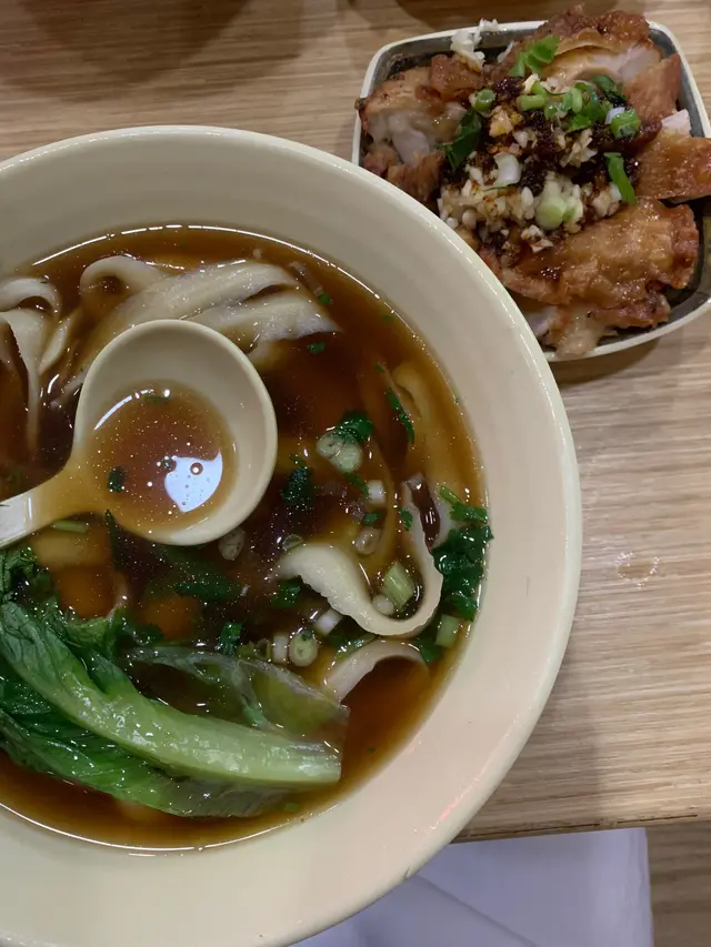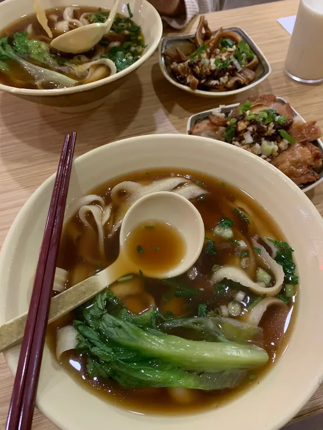 好少黎新北江食飯,但係因為厭倦左食大集團,所以呢陣子都去左新北江揾食揸住揾食APP揾左樂湖刀削麵,老實說自從以前食過唔好食既刀削麵後對呢個麵食都避之則吉,如果唔係見到網上有人推薦呢間店我諗都唔會俾多機會刀削麵今日叫既外賣係麻辣雞扒(少辣)、刀削麵(少辣)配豆漿呢間舖頭等外賣係要有少少等待時間,儘管NON-PEAK HOUR都要等十分鐘UP的未食都要先讚一讚,就係餸既辣度同麵既辣度都可以自選,即係可以㨂餸唔辣麵辣不過我以前試過叫麵唔辣,個人認為唔辣個味有點齋,叫返少辣會惹味很多麻辣雞扒有生蒜、蔥、荽茜(很香!)、雞扒切成一舊舊,炸得好香,配以辣油令人食指大動啊!刀削麵附以兩條生菜、蔥花刀削麵粗幼適中,唔會好似食麵粉一大舊咁,麵煮得軟,唔會咬到嘴仔攰。麵既長度大致一樣,唔會有D好長有D好短最重要係麵量十分多,我從未試過可以KO一碗麵,次次都食剩⋯⋯巴打果然有好推介