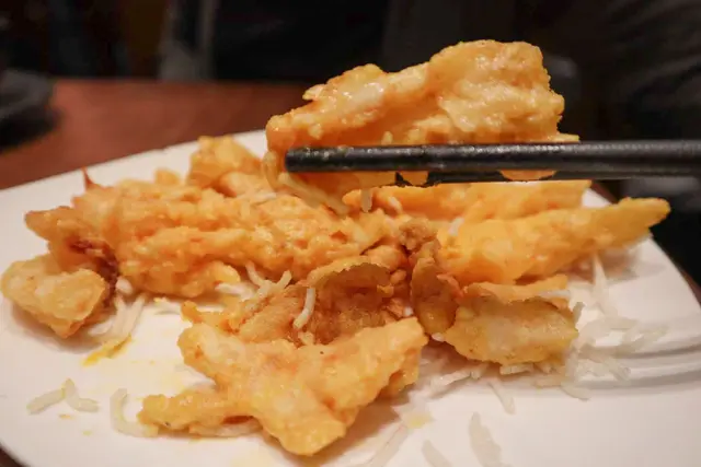 主打港式小炒的一間餐廳, 以大排檔風味聞名, 人流‘’一枱接一枱‘’, 就算八點後都依然有新客人, 以平日來說十分厲害! 👏🏻 火焰鹽焗奄仔蟹 $398/隻正值嚐蟹最佳季節, 我們點了這道餐廳招牌菜, 新鮮的奄仔蟹經過鹽焗處理, 侍應送上蟹時會點火, 絕對增加了視覺效果 🤩 正正因為用火燒一燒, 蟹膏口感變得像蛋黃, 更加香更加濃郁 😋 蟹肉會有微微玫瑰露酒味, 單純鹽焗, 能嚐到蟹肉鮮甜味! 奄仔蟹並不細, 雖然越細越好吃, 但這隻質數都很好 👍🏻拔絲咕嚕肉 $128另一道餐廳招牌菜, 還有蜜薯牛柳粒都是招牌菜之一, 不過我二選其一。咕嚕肉炸得脆口, 有少許拔絲效果, 一般餐廳的拔絲咕嚕肉都會比較甜, 但這個酸甜度十分適宜 😊 還有它的肉沒有肥膏, 雖然平時我喜歡半肥瘦, 但咕嚕肉是例外的 😬魚香茄子煲 $108上碟時嗅到魚香香味四溢, 茄子煲維持在一個超高溫的狀態下, 所以就算吃完奄仔蟹後這個煲都仍然熱騰騰的, 這點特別加分 😁 魚香味濃厚, 咸香味重, 相當惹味, 同時不會太油膩, 絕對是撈飯一流的菜式!黃金脆鮮魷 $148薄薄的炸粉, 外面加了咸蛋黃, 㕑師選用比較高質的咸蛋, 咸蛋黃份外香, 而且細膩, 吃下去微微溶的狀態, 比一般咸蛋好吃 😌 魷魚有咬口但並非韌, 同時比較薄身。餐廳內有廂房, 細間可以容立8-10人左右, 最底消費$2,500, 除了吃更可以唱歌, 隔音設備好, 外面聽不清楚裡面的歌聲 😃 整體除了食物有水準之外, 雖然侍應超忙, 仍然維持非常好的服務態, 超讚!…查看更多
