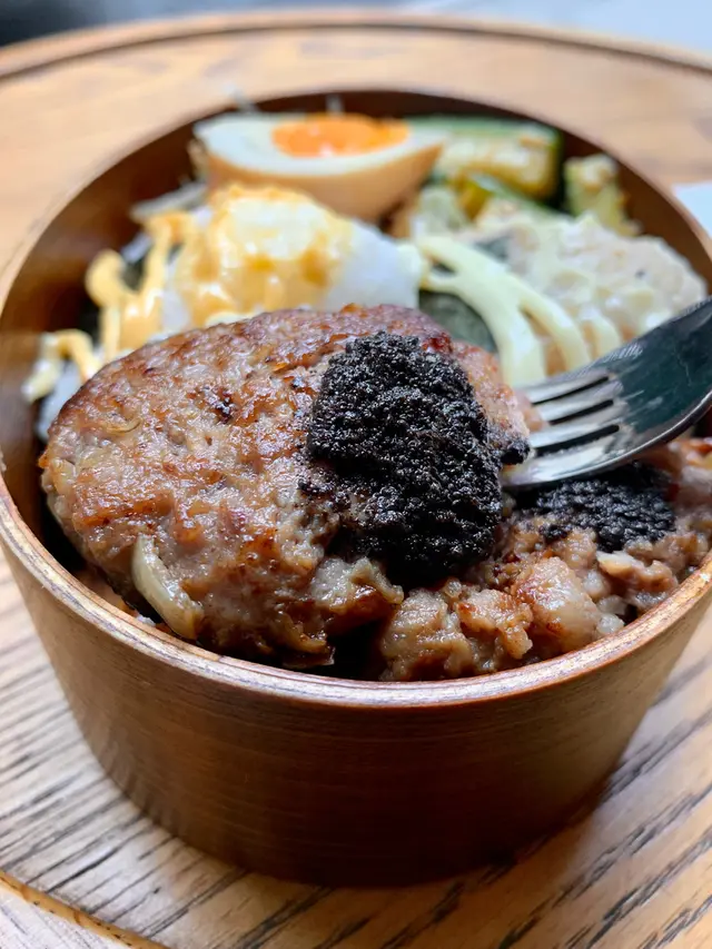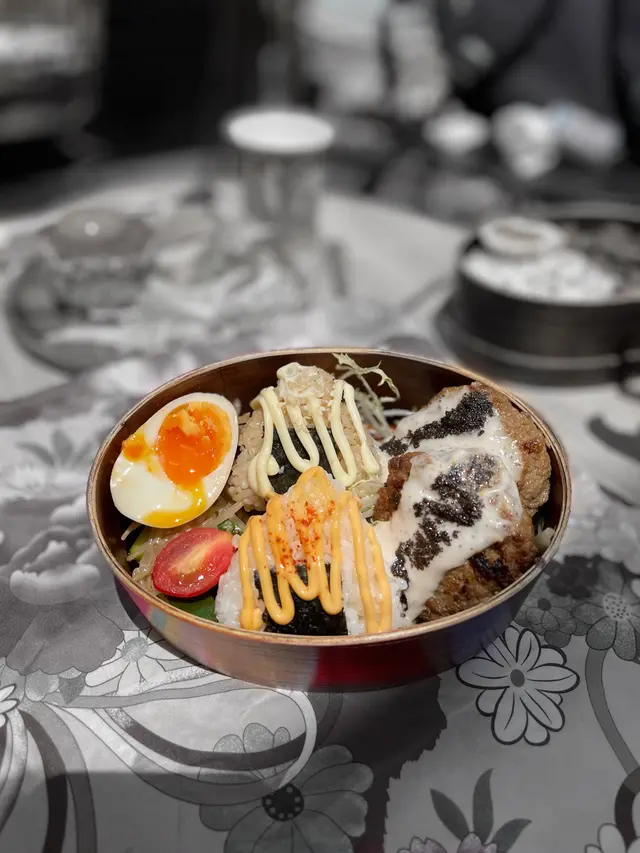 呢度真係亂影都靚四層高嘅café,每層都係打卡位仲有得睇下衫行到攰又可以買杯咖啡飲下Chill🌻▪️黑松和牛漢堡盛當 $118上枱用左便當布紥住,日式嘅花紋好精緻。拆開後用黎舖枱,同食物影相都好靚。和牛漢堡肉質鮮嫩可口,亦鎖到肉汁,另外仲有半粒溏心蛋,配飯團好夾。▪️煙三文魚牛油果蟹子沙律🥗 $98有牛油果嘅野都係正東西🥑,蟹肉亦鮮甜夠多,每啖都係蟹肉。上面有隻日本生蛋,攪拌均勻配多士食都好fresh。▪️Dirty Mocha ☕️ $52呢杯Dirty Mocha真係夠晒Dirty, 飲嗰陣要小心啲哈哈🎶 朱古力味唔會搶到咖啡香,亦唔會甜到入心入肺,恰到好處。▪️Black Sugar Rose Latté $52玫瑰香嘅牛奶咖啡,百喝不厭。…查看更多