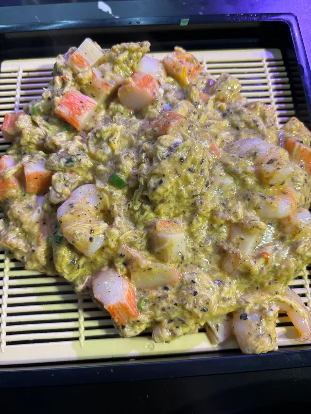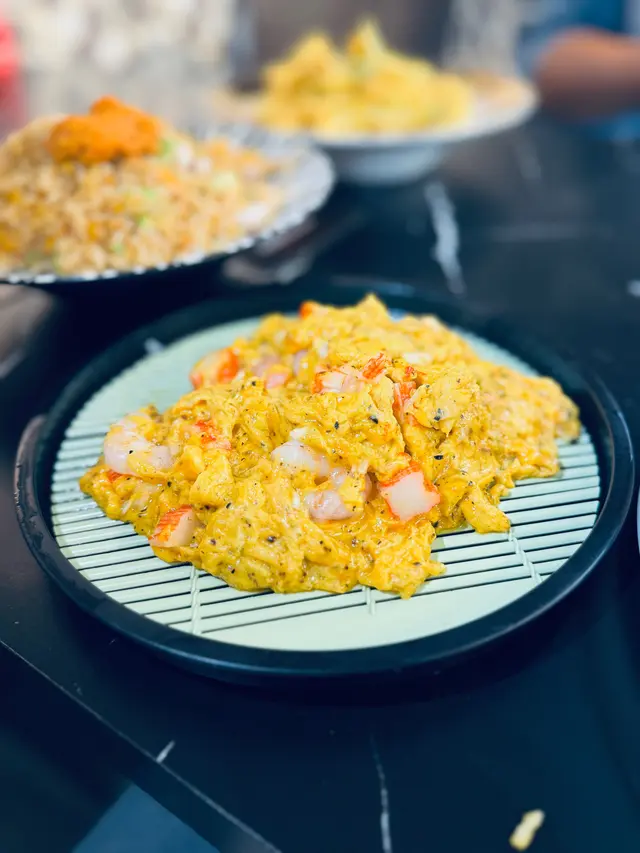 呢間係一間位於熟食市場超人氣嘅大排檔,經常full場😱有唔少網民大讚食物高質有鑊氣,每日仲會推出特價海鮮,真係「平、靚、正」👍🏻💗特價3a椒鹽瀨尿蝦($98)瀨尿蝦非常巨大,有成隻手掌咁大,店家已預先將中間殼剪開,方便剝殼,蝦肉鮮嫩彈牙,非常鮮甜,滲透椒鹽香味🦐💗黑松露滑蛋炒蝦仁($58)炒滑蛋非常嫩滑Creamy,食落超濃郁黑松露嘅香氣,仲有超多爽口嘅蝦仁同蟹柳,非常足料🍳💗芝心咕嚕肉($128)咕嚕肉炸至脆皮,肉質爽滑🐖最特別係肉中間夾住流心芝士同面頭灑上大量芝土粉,非常邪惡🧀每粒咕嚕肉都裏滿糖醋汁,再加入蜜桃、紫洋蔥同彩椒去炒,酸甜醒胃🍑💗秘製蟹黃醬海皇炒飯($58)海皇炒飯炒得乾爽有鑊氣,飯粒金黃且粒粒分明,有齊魷魚、元貝、蝦仁、雞蛋、翠肉瓜粒等配料,非常豐富🍚面頭再加上蟹黃醬,夠哂惹味🦀💗脆米金沙炒翠玉瓜($98)翠肉瓜清甜爽脆🥒每片瓜都裹滿金沙鹹蛋黃醬,面頭再灑上鹹蛋黃碎,鹹蛋黃超濃🥚最特別係加咗脆米增添口感,不過食得多都幾膩…查看更多