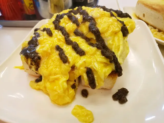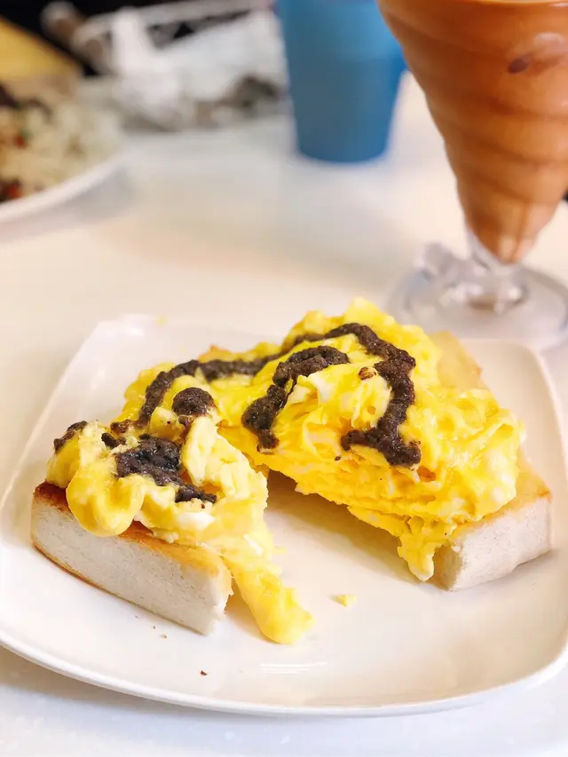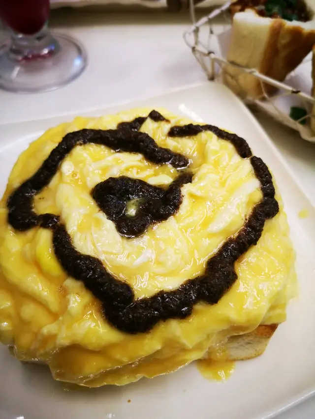 牛油多士烘得脆口,炒蛋嫩滑,黑松露醬份量多,但有少少酸