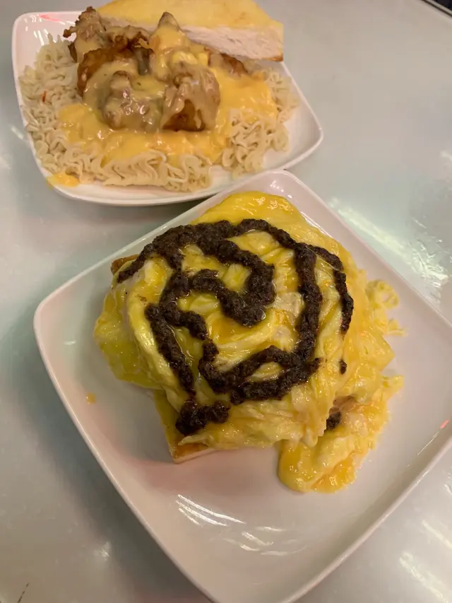 假日跟家人慕名而來了這家很高評價的茶餐廳。整體還可以,很一般,不過還真有港式風味。食物份量也不少,所以胃口少的話真的不用點很。我們一家三人點了三款菜式,還點了兩杯飲品。先嘗了芝士豬扒撈丁,豬扒沒有什麼肉味,不過肉質也挺軟熟。配上芝士汁,一個人吃的話會太膩,不過幾個人分享吃就剛剛好。黑松露炒蛋多士很香,炒蛋份量很足夠,配上黑松靈醬,還不錯,不過沒怎麼嘗到黑松露的味道。建議上菜後要先儘快吃光,因為放夠了的話,炒蛋會把多士弄濕,多士會不夠香脆。蝦多士炸得還真脆,不過蝦膏沒什麼鮮味,不太新鮮,不值得一吃。飛仔華田只是普通的柯華田,飲品上面加了一點奶油和巧克力脆片,喝了一會兒就沒什麼味道了。另外的波波奶茶,也是普通的凍奶茶,喝起來亦有點兒太甜。…查看更多