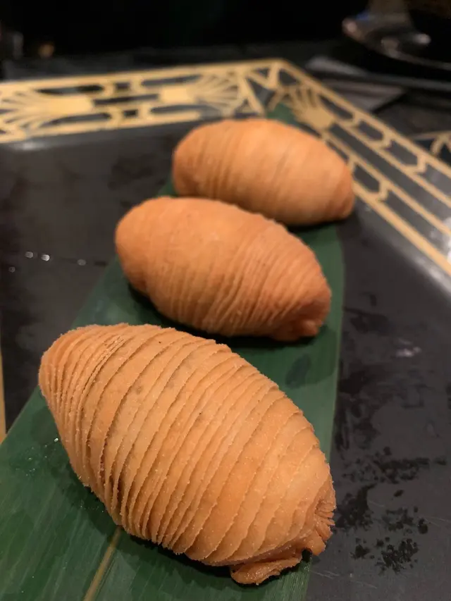4. 海膽蟹肉春卷 $108春卷脆口,海膽唔腥。正常發揮。5.石鍋蔥香鵝肝和牛炒飯 $278好香,熱辣辣,但味道太濃。6. 流心海鹽焦糖朱古力糯米糍 $65軟綿綿,煙煙韌韌,朱古力流心,有驚喜