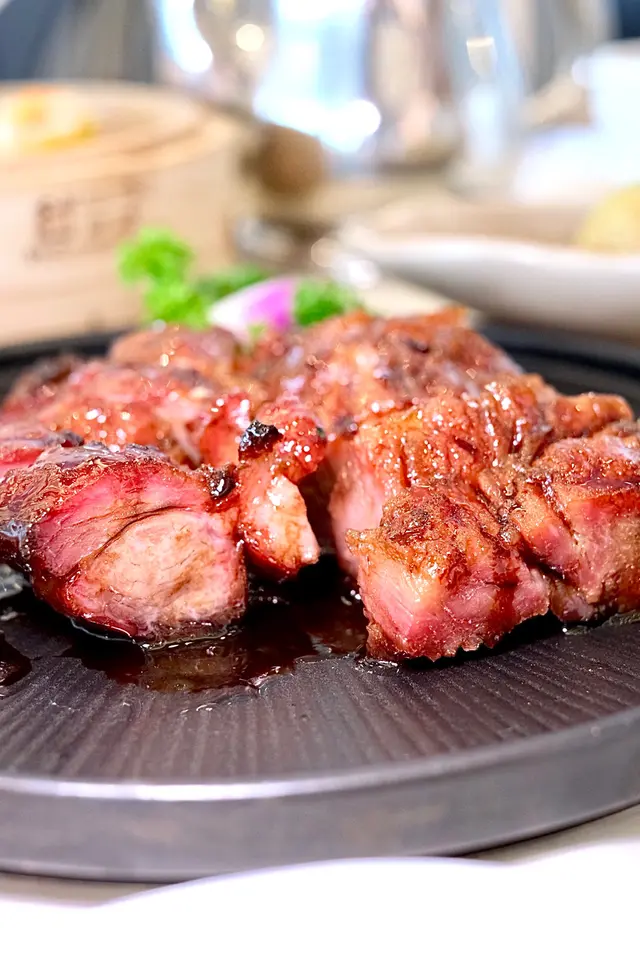 朋友推薦凱薈環境極好,有直達維多利亞港的無敵海景,今晚一行四人帶同老人家,盡情享受一下。餐廳裝橫堂皇,很有宴會感,感覺是為婚宴而設的。今晚應該是無婚宴,接受散客用餐。一直覺得做婚宴的餐廳其食物質量應有一定的水平,果然是。我們點的每道菜,精緻高質,驚喜的是,大部分菜式都一百多左右,在尖沙咀來說,真的性價比高。黑糖叉燒($168)半肥瘦叉燒,賣相已經讓人垂涎三尺,外皮微焦,非常惹味,好吃。七味椒鹽豆腐($68)外脆內軟,潵上辣椒粉,一定要趁熱吃。金沙墨魚仔($78)墨魚炸成一塊塊,由於炸粉較多,口感是有的,但墨魚味稍微被蓋過了。招牌葡汁焗釀響螺($512)這是最貴的一道菜,但個人覺得貴得值得,螺肉淡淡肉,釀著好像是洋蔥、煙肉、青椒的切粒,非常滿足。生拆雞絲燴花膠($352)這道生拆雞絲燴花膠有驚喜,味道不濃,清爽順口,大家都讚口不絕。羽衣甘藍($128)很少吃羽衣甘藍,只知道營養價值很高,降膽固醇、抗氧化等,店員推薦,這是本地城市農夫種植的,於是一試。羽衣甘藍用上湯煮,味道微甘,口感青澀。花雕BB鴿($68)賣相不錯,肉質鮮嫩,滲進濃郁的花雕酒味。拔絲鮮菠蘿咕嚕肉($168)人生吃過最拔絲的咕嚕肉!外脆內鬆軟,甜酸汁適中,口感有層次,加上新鮮的菠蘿片,讓人回味無窮。椰香脆麻花($28)居然在尖沙咀吃到28元的食物!麻花脆香,蛋味濃郁,和之前吃過的很不同,點讚!綜合這次用餐,大家都說很棒,值得再來!…查看更多