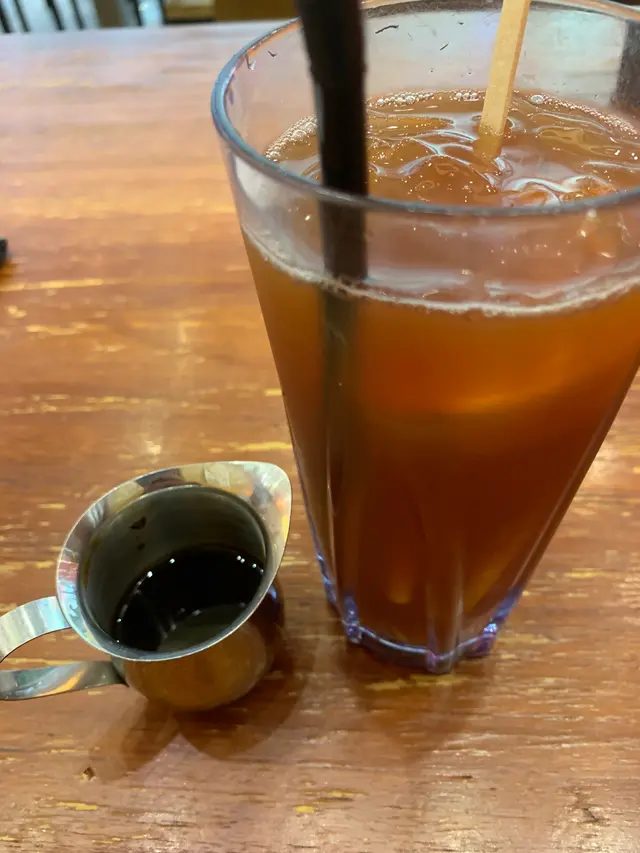 係呢頭住左咁多年都一路冇食過呢間沖繩料理,今日趁放假就趁機試下去既時候係大概1300所以未算係好lunch period所以店入面都唔full,大概都係半滿咁。入到去侍應會比qr code手機自己落單,然後落完單會比番張單+甜品飛你,到左想食甜品再交飛就可以換到甜品首先上左杯黑糖檸檬茶,其實飲落唔算好飲得出黑糖味,只係黑糖應該比普通糖漿冇咁甜,落曬頂多似出面飲既少甜咁然後呢碗係特濃番茄烏冬,仲寫明係少辣既,我平時去譚仔食十小都覺得辣既,呢碗我就完全feel唔到辣味。加埋其實蕃茄味都唔算濃,話似特濃既就只有糖既質感。另外就係個presentation麻麻地?呢碗我一上檯就影架啦不過都好似我食到一半先影咁😂😂同埋都ok多烏冬痴係碗底。不過味道黎講都算唔錯,可能只係我expectation太高😂😂😂然後就到呢個大阪燒炸豬扒,豬扒偏瘦但係唔會話好硬食紙皮咁,味道偏濃不過都ok好食,唯一差d就係佢切豬扒冇切到底所以係要自己搵筷子扯開佢😂最後就到呢個波提圈?炸冬甩波波咁既野😂我都係食唔出黑糖味但係佢個質感好好,不過可能黑糖係得下面d醬都唔定🤣外脆內軟仲有少少煙韌,上檯重要熱辣辣更加好食🥰上面球雪糕就有d襯唔起呢舊好食既甜品,普通雲呢拿味不過入面好多冰渣⋯總括而言,呢餐加埋10%收$101,我就覺得都算ok既?話曬又有野飲又有甜品不過係個熱食既qua真係差少少⋯如果係冇左個+1既話可能會覺得抵d,成餐呢個qua收過100唔會係我得閒就會想去食既選擇😂😂再加上dpark嗰間個裝修比較上似快餐店咁半open area既,就更加好似差咁d野唔需要咁貴咁囉…查看更多
