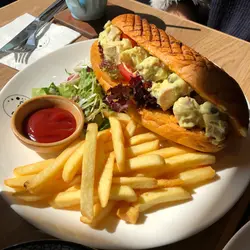 噚日(17-4-2021 Sat)去完銀行食個晏,由於呢喥可以用中電送嘅$100.00電子消息劵,咁就大大力嚟懲罰佢啦.我哋嚟到唔多人排隊,大約等咗10分鐘就有位,睇完menu,老公決定要$89.00嘅班尼廸蛋,黑魚子,煙三文魚嘅all day breakfast,要減$8.00,變成$40.00嘅自家製龍蝦海鮮濃湯.我要$58.00嘅Green Tea Waffles,有蜂蜜窩夫,蜜燴紅豆蘋果,吉士奶油,綠茶雪糕,香草忌廉同純乳酪同 $39.00一壺,免費refill嘅蘋果肉桂茶.落完單,店長話all day breakfast重有一杯嘢飲包,可遲啲決定落單.冇耐,蘋果肉桂茶同自家製龍蝦海鮮濃湯到嚟,特製嘅壺可以好安全咁放喺杯上面,好骨子.拎開自家製龍蝦海鮮濃湯睇,海鮮放咗喺杯喥,有蝦,帶子各一隻同兩隻蜆,龍蝦濃湯好深色,味道真係好濃郁,而且一壺斟到兩碗咁多,好抵飲.海鮮又新鮮,好正.蘋果肉桂茶係茶包嚟,肉桂味重啲但唔太濃,可接受.Green Tea Waffles到嚟,圓形嘅窩夫好鬆軟,味道清淡,要加綠茶漿同奶;蘋果紅豆都甜甜的,上面嘅珠珠有荔枝味.中間嗰撮應該係吉士奶油啩,味道唔錯.咁,純乳酪呢?邊啲係?班尼廸蛋,黑魚子,煙三文魚all day breakfast,賣相好靚,蛋黃全流心,配埋微鹹嘅煙三文魚食好夾;沙律菜同麵包粒都正常冇問題.然後後加$52.00嘅薑汁味半熟梳乎厘,呢個要用30分鐘做,淡淡嘅薑汁味,我覺得啱啱好;梳乎厘鬆軟,亦真係半遜,底係全熟但仍鬆軟.同一個甜品有兩種口感.老公最後要黑糖薑母茶,呢個味道亦啱啱好,唔錯.上次食評已經係上年5月23日刊登嘅呢篇: https://www.openrice.com/zh/hongkong/review/%E7%AC%AC3000%E7%AF%87%E9%A3%9F%E8%A9%95-%E6%84%9B%E5%BF%83%E9%BB%83%E5%BA%97-e3729967…查看更多