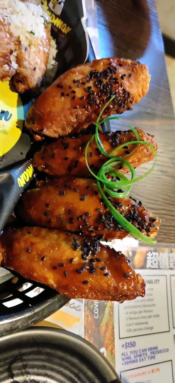 我朋友勁鍾意食雞翼🐥既然係咁梗係要同佢一齊去食吓「雞翼放題」睇吓究竟可以食到幾多啦😆我哋揀咗🔟款口味仼食,每次可以點最多5⃣️款,每款4⃣️隻,而飲品就任飲。🔟款包括:BBQ蒙古燒烤味(孜然香及微辣)、泰式甜辣醬、紐奧良香粉(好似食緊辣薯片咁😆)、黑芝麻海鮮蜂蜜 (🈶️d似中式甜醬海鮮醬嘅味道)、水牛城醬、死神醬(唔食得辣所以無點)、BBQ咖啡香味 (有炭燒香味)、巴馬臣芝士蒜蓉味 (雞翼上面鋪滿芝士碎,加埋蒜蓉好惹味)、田園風味 (又係好似食緊薯片咁,不過係洋蔥酸忌廉味😍)、加勒比海香辣雞 (酸酸甜甜帶微辣,仲配埋菠蘿粒,幾特別)。另外亦加咗3⃣️款Dip,大大兜都只係$20/3碟🤩店員介紹話藍紋芝士傳統上用嚟點「水牛城雞翼」,又真係好夾喎~芝士嘅奶油味平衡左水牛城醬嘅酸,食落亦🈚️咁辣👍🏼黑松露蛋黃醬睇🉐️唔係街外現成嗰啲,🈶️好香嘅黑松露味又creamy。至於是拉差香甜辣醬都幾特別,係泰式風味醬,微辣之餘又甜甜地,點邊款都啱😉食完之後計過數,我哋喺9️⃣0️⃣分鐘內食咗4X隻雞翼,個桶仔🪣內嘅雞翼骨成座山咁,睇到都覺得誇張🤣🤣…查看更多