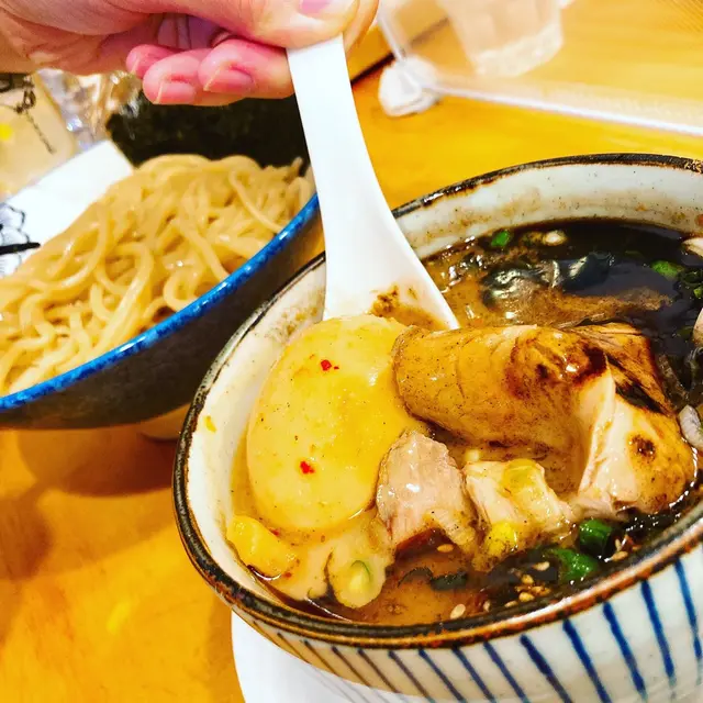 2023.9.20今次試既哩一間店係朋友介紹既沾麵店,因為我好少食沾麵,所以約埋一齊去試。我點左一份黑蒜油豚骨沾麵+可樂🙂🍲🍲🍲沾麵湯既黑蒜油味太重🤔湯底完全飲唔出豚骨湯既鹹香味😟而且麵湯比較稀身,麵要浸一陣先掛到少少湯😗🍜🍜🍜麵係方形太麵,食落煙韌彈牙,軟硬適中🍥🍥🍥配菜有叉燒,味玉,竹筍放入沾麵湯入面麵有一塊紫菜,另外朋友加左一份叉燒share叉燒係薄既梅頭瘦叉,但食落唔柴,冇豬腥味😃味玉鹹香適中,蛋黃流心幾大,可以撈埋落麵食竹筍比較幼,食落爽口,雖然有少少怪味😯🫗🫗食完麵之後雖然都有加湯,但飲落都係一大陣油味,豚骨湯既鹹香完全冇……之前試過兩間沾麵我係連湯都飲唒,哩碗我真飲唔落😟店內環境加埋廚房大約500至600尺左右,雖然店內有厠所,不過好窄,真係再肥少少都入唔到😂😂坐位大約4到6張四人木制枱櫈,有隔板隔開,如果兩位就要拍住坐隔離,冇得對住坐😯枱面有食拉麵用既調味料🧂有檸檬水提供🍋🍋雖然逼少少,但地方好乾淨整潔😃😃✨✨播放住全部都識既日文歌😂😂店員好主動有禮,氣氛我覺得幾好😃😃價錢方面,一份沾麵約$78到$90,人圴消費約$80到$100左右,另外午餐時段惠顧,送氣水一罐,其他特飲+5$😃,如果個湯底好好改良一下,會係幾抵食😮…查看更多