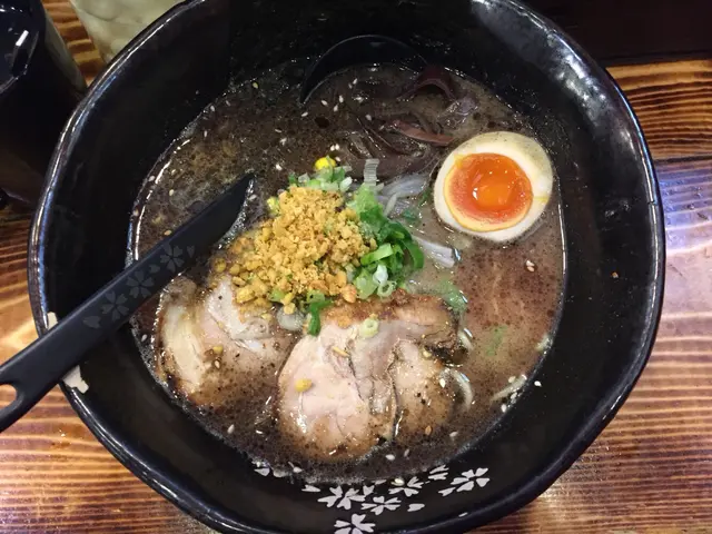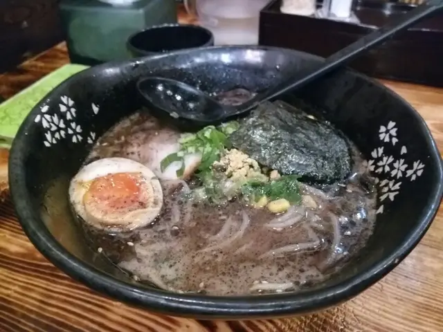 今日放咗工之後有啲事就去咗佐敦,順道約喺佐敦放工嘅朋友食一餐晚飯。我哋當時都冇乜嘢心水一路行嘅時候就見到呢一間特色拉麵店。見佢個裝修幾靚我哋就入咗去喇。一入到去店員就好熱情咁招呼我哋,拉麵店其實唔係好大大概有10多個位置,可能係閒日嘅關係,店內當時亦都唔係太多人。呢一間拉麵店嘅裝修好有特色,周圍都放滿左好多好日式嘅擺設,其中最吸引人嘅就係呢一個一碗入魂嘅木牌。再睇一睇餐牌,佢哋有好多款味道嘅拉麵供應,除咗最大路嘅叉燒黑蒜之外仲有牛肉w達人(即係鰻魚) ,而每一日仲會有限定達人供應添。價錢有$75至到$108不等,呢個價位屬於中等水平~除咗拉麵,佢哋仲有好多款小食,例如雞肉串,雞軟骨餃子芝麻雞翼炒雜菜等等。最好我同友人決定分別叫咗黑蒜達人拉麵同埋Miso (味增湯)達人,再加一客燒八爪魚丸小食。過咗一陣,拉麵就逐一送上。朋友嘅MISO味噌湯拉麵,佢嘅叉燒肥瘦均勻而且肉質鮮稔,口感剛剛好至於湯底,中史間佢湯底會再加一片牛油,但依然都唔會太油膩唔會好油啱晒女仔嘅口味。過咗一陣,我嘅黑蒜豚骨湯拉麵都上場喇。湯底亦都係濃而不膩,而且蒜味亦都好重,值得一讚係佢哋嘅流心蛋,糖心晶瑩剔透好有驚喜。最後,我哋嘅小食八爪魚丸子亦都上場,佢一共有三粒,而且每一粒都炸得好香脆,入面亦都有好多八爪魚粒,唔會一食落去淨係成口都係麵粉,再加埋沙律醬呢個小食送拉麵一流。…查看更多