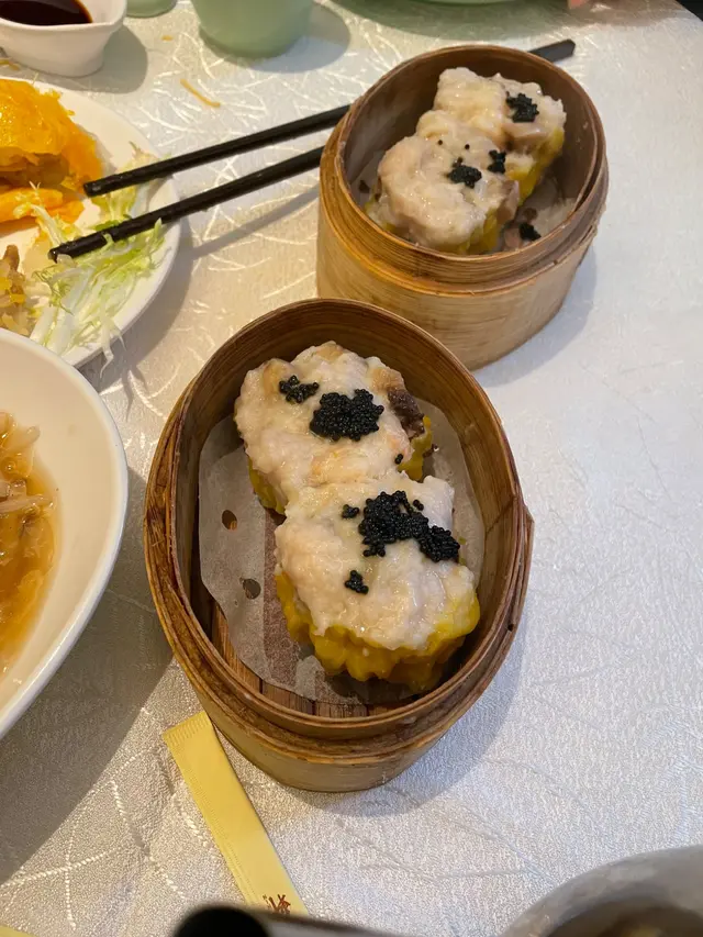 因為太多酒樓冇開,又想飲茶,見到呢間有開就去試下。餐牌睇到普遍價錢都中上。懷舊燒腩卷,正常水平,肉肥瘦皆有。用黑魚子幾特別,雖然佢得兩粒,但係每一粒嘅size都好大,有其他地方嘅2-3倍,所以絕對抵。鳳爪就正常,下面用豆角鋪喺底,第一次見。黑椒銀蘿爽肚,五星推薦,最好食的一款點心。爽肚真係唔同平時嘅牛肚,口感特別正!再去一定會encore。如果平時一定唔會特別試,只不過見佢出現係中式餐廳,就試左。總括嚟講都有7/10,五星係比創意。啖啖蝦肉同魚肚,湯汁非常入味。…查看更多