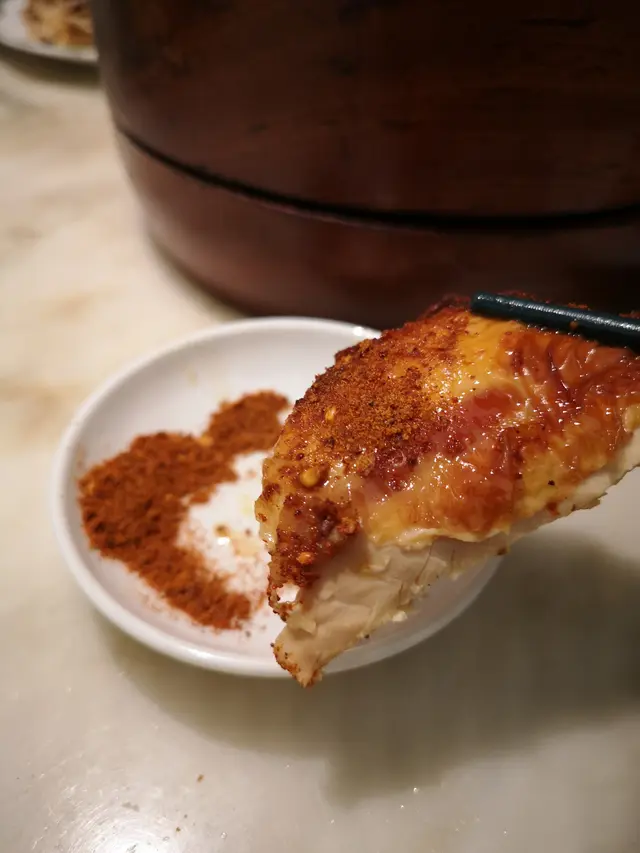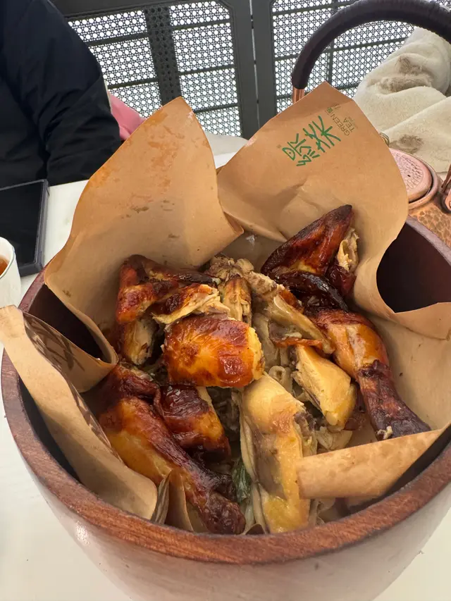 龍井烤雞 $138 主食必點招牌龍井烤雞🐥,用三黃雞,即叫即烤,色水好靚,烤嘅時間剛剛好,皮十分薄,烤到脆身,帶有微微茶薰味,亦都逼哂雞油出來,雞肉嫩,沾埋辣粉更惹味!
