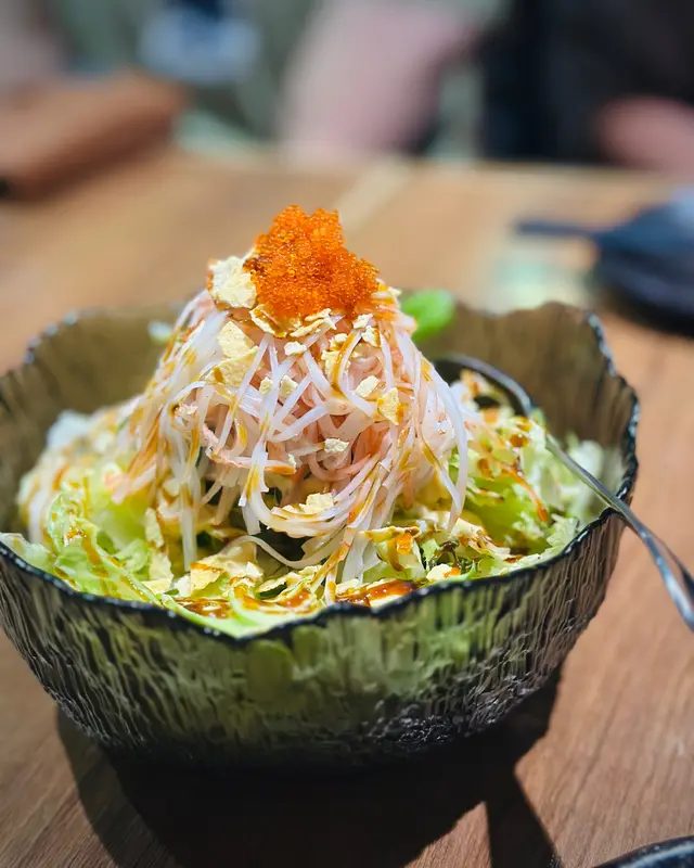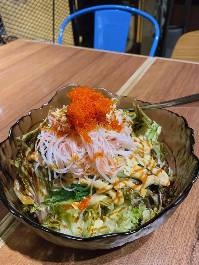 朋友相約在觀塘工業中心古今二短聚,初頭聽見觀塘工業中心,感覺地點很不方便。但經朋友帶路,原來又發現餐廳位置很方便,距離觀塘港鐵站D4出口,路程只需1分鐘。😂一步入餐廳門口,已看見整間餐廳都佈置好像日本居酒屋。餐廳老闆可能是一個動漫迷,餐廳還擺放了一些動漫Figures。因為今次是短聚,主要都是與朋友傾計為主,所以叫的食物不多。而朋友最想試就是古今二推介特色卷物「金龍卷」,而我就叫了一個「龍卷風沙律」。龍卷風沙律份量不少,除了沙律菜,還有海藻、蟹柳、蟹籽和脆片,再配上特製沙律醬汁。口感清爽香脆,沙律醬汁帶有少許微辣,味道都很特別。金龍卷賣相精美有心思,中間卷物餡料用了炸蝦,最有心思是最尾的那一件金龍卷,放了一條炸蝦尾,令人看見可以想像見到「龍」的尾巴。三文魚頗厚,挺有口感,加上配有少量芝士醬,味道也很有層次感。…查看更多