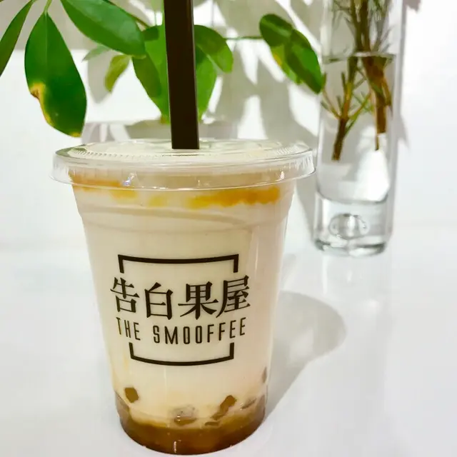 這間位於太子的甜品店「告白果屋」,在我未正式介紹此食店的食品和飲品之前,暫且先把話題轉移到另一件事去,這件事就是「告白果屋」本身店名設定的問題。話說把「告白果屋」分析,會出現兩個解讀版本。第一個版本的「告白果屋」裡面的重點,在於「告白」兩個字,因為「告白」這兩個字,我覺得有「向人坦白告知自己的想法」的意思,而且「告白」變成了日本文字常見的詞彙。但是如果從另一角度看「告白果屋」這四個字,再把焦點移後,就會意外看到「白果」這兩個字,可以解作食品,亦可解作「做事徒勞無功」,「食白果」的,語帶不祥的負面意思。所以當我來到太子,找到「告白果屋」的時候,心裡面其實是少許的矛盾,直至我進入「告白果屋」之後,知道「告白果屋」有什麼食品可以食的時候,我才放心向侍應正式點餐。雖然「告白果屋」本身有優惠餐牌提供,聲稱「告白果屋」的奶茶飲品,有即場「買一送一」的優惠,可惜我詢問過「告白果屋」侍應之後,才知道「買一送一」優惠只適用於一般奶茶飲品而已。我最後亦被迫無奈放棄「告白果屋」的「買一送一」優惠,轉向「告白果屋」其他的餐牌,繼續搜索下去了。原來「告白果屋」的餐牌裡面,還有主打售價台式芋圓甜品。不過我自問對台灣芋圓一點興趣都沒有,所以我最後沒有選擇叫和享用「芋圓」甜品。反而我無意中發現,原來「告白果屋」居然,連近期大熱的手調「黑糖珍珠撞奶」飲品都沒有提供。「告白果屋」裡面的台式手調飲品餐牌雖然沒有使用黑糖,取「黑糖珍珠撞奶」而代之的手調飲品,反而是以椰糖作為調味糖漿,製作而成的「椰糖珍珠撞奶」飲品。「告白果屋」裡面為「椰糖珍珠撞奶」飲品選擇了另一個名稱,叫做「龍珠爺椰」。「龍珠爺椰」裡面的「龍珠」,即是我們平日都會食的「食用珍珠」,「椰」即是我今次食評會講的「椰糖」。「椰糖」作為甜味的調味原材料,跟「黑糖」雖然同樣味道很甜,但是「椰糖」會有一種植物化,有草青野生感覺的天然甜味,相反「黑糖」只是味道濃度比較高的甜味原材料,「黑糖」的甜味亦較「椰糖」更加顯著。不過有一點可以肯定的是,「椰糖」本身的糖含量,也絕對不是一般善男信女,所以我一直覺得「告白果屋」選擇以「椰糖」,取代「黑糖」成為食店台式飲品的主要調味材料,當中綽頭大於實際味道作用。我選擇了一杯「龍珠爺椰」,作為我在「告白果屋」裡面享用和試味的飲品,至於「告白果屋」餐牌裡面其他的食品跟甜品,我就暫時忍一忍口不吃了。「告白果屋」內部的樓面大小,以長方形為主,當中「告白果屋」主要負責製作芋圓甜品的廚房則以半開放式,置身於「告白果屋」樓面之中,但是以木製晶隔隔開食店店員與食客。但是根據我在「告白果屋」裡面的所見所聞,「告白果屋」負責製作台灣手調飲品的廚房,另有所屬的地方,所以我想看「龍珠爺椰」的製作過程也無可奈何。或者我肯放開對「芋圓」甜品的先入為主負面觀念,願意選擇點台灣「芋圓」甜品的話,我可能會吃到更有意義,更有價值的台灣「芋圓」甜品。至於我的「龍珠爺椰」手調椰糖珍珠撞奶飲品,則在我點餐後大約十分鐘左右過後,就順利製作完成。可是「告白果屋」不是一般外賣自取台灣飲品店,否則我可以選擇拿着「龍珠爺椰」,在街上一邊走一邊享用飲品。當然,在「告白果屋」外賣自取購買一杯「龍珠爺椰」,然後一個人一隻手,拿着外賣塑膠膠杯裝着的「龍珠爺椰」椰糖手調撞奶飲品,在內街街上慢慢閒逛,懶理大街的噪音癈氣,一個人享用飲品亦是一種享受。然而當時的我,實在太想留在「告白果屋」店內飲用「龍珠爺椰」,結果我留在店內飲完整杯外賣杯裝「龍珠爺椰」,飲完才真正結賬離開。十分鐘過後,「告白果屋」侍應終於都把製作完成的「龍珠爺椰」飲品,終於送到我的面前,我嘗試在未攪拌「龍珠爺椰」的飲品的情況,直接先喝第一啖,結果「龍珠爺椰」的濃厚椰糖甜味立刻進入我的味蕾裡面。「告白果屋」的廚房店員,也有嘗試在「龍珠爺椰」的外賣飲品膠杯杯壁上面,倒出一些椰糖糖漿。「告白果屋」店員讓椰糖糖漿,在外賣膠杯壁上,拉出一些流線型拉花流蘇形狀圖案。不過椰糖糖漿不像一般的黑糖糖漿,椰糖糖漿對「龍珠爺椰」整體上的味道效果影響不大,因為「龍珠爺椰」實際的椰糖甜味已經十分濃厚,再混合椰糖糖漿其實都只是畫蛇添足的多餘事而已。「龍珠爺椰」的飲品質地看來呈現了,比較稠密的狀態,感覺反而有點像飲奶昔。不過「龍珠爺椰」實際的口感,卻沒有奶昔那麼稠密,其實「龍珠爺椰」還是一般的椰糖撞奶飲品而已。問題在於「告白果屋」的「龍珠爺椰」撞奶飲品,選擇了不使用「黑糖」作調味料,反而改為使用比較少人選用的「椰糖」做調味材料,結果「龍珠爺椰」味道雖然都很濃,但是卻比黑糖撞奶多了一陣草本植物甜味。另一方面,「告白果屋」的廚房店員,選擇了一般沒有顏色的食用珍珠,作為手調椰糖撞奶飲品裡面的珍珠配料,沒有顏色的食用珍珠,跟一般坊間售賣台式飲品,裡面的黑色的黑糖珍珠有很大的差別。「告白果屋」這種沒有顏色的食用珍珠,本來就沒有任何味道可言,但是幸好「龍珠爺椰」這款椰糖手調撞奶飲品,本來就有非常濃厚的椰糖甜味,結果濃厚的椰糖甜味,直接把食用珍珠味道都浸