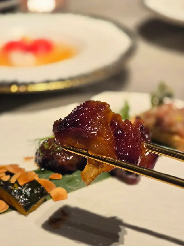 得知「六公館」推出了晚市套餐,可以一次過品嚐多款匠心菜式,今天特意帶媽咪來享受一頓溫馨晚餐💖 「六公館」位於尖沙咀海港城海旁,坐擁270度維港醉人景致🌉,景色開揚迷人,室內用餐區或室外位置都能欣賞維港景色❤️,打打卡📸,而室內裝潢時尚雅緻,融入古典韻味,營造出舒適而富格調的用餐氛圍☺️餐廳主打新派粵菜,巧妙融合傳統和創新❣️ 晚市套餐包括頭盤、湯品🥣、4款主菜、主食🍚及甜品,款式豐富🤩 🔹️頭盤1️⃣牛油果金槍魚咸蛋酥酥脆的咸蛋酥放上綿密的牛油果🥑和鮮美的金槍魚🐟,咸蛋🥚增添鹹香與濃郁風味,口感層次豐富。2️⃣龍眼蜜燒西班牙黑豚叉燒西班牙黑豚肉本身風味濃郁🐷,叉燒燒得焦脆燶邊,叉燒肥瘦適中,肉質軟腍多汁,外層塗上天然甘香的龍眼蜜🍯,入口充滿蜜香,好yummy‼️ 3️⃣巴旦木焗南瓜件南瓜焗至微焦🎃,口感綿密,散發天然甘甜,配搭輕脆的巴旦木,即是杏仁,整體味道清新🤗。 🔹️湯鮮茄松茸頭貴妃舌湯底清澈卻味道層次分明,鮮茄🍅帶來微酸果香,提升整體鮮味;松茸頭🍄🟫香氣濃郁,質感爽滑;貴妃舌🦪則嫩滑彈牙,入口細膩。 🔹️主菜1️⃣老菜甫蒜燻䱽魚經蒜香🧄與煙燻♨️處理後,甘香鮮嫩的魚肉🐟滲入煙薰香,魚肉肉質細嫩,散發濃郁香氣,老菜甫鹹香微甘,與魚肉的鮮味互相融合,色香味俱全🥰 2️⃣燒椒醬法蔥煎本地青龍龍蝦肉質鮮甜彈牙🦞,煎至微焦,外層微脆,內裡嫩滑,法蔥清香柔和🌱,加上燒椒醬🌶帶來的微辣與煙燻香氣,整體味道和口感都豐富。3️⃣野菜黑糖燉牛肋骨牛肋骨經慢火燉煮🐮,廚師更將肋骨拆肉去骨,啖啖都是肉,肉質軟腍入味,肉汁濃厚而不膩,黑糖帶出微甜焦香,野菜🥬🫛可以平衡整體口感與油膩感。4️⃣鹽水沙蜆清湯浸地瓜苗沙蜆以鹽水🧂煮出天然鮮味,湯底清澈透亮,地瓜苗嫩綠爽口🥬,吸收蜆湯精華後更添甘甜🥣,入口滑順。 🔹️主食十三香鳳肝燉飯鳳肝經由13種香料調配而成的香料醃製後煎香🔥,外層微脆,內裡嫩滑,散發濃郁肝香,燉飯充分吸收香鳳肝的精華,米飯粒粒分明🍚又飽滿入味,口感豐富,整體味道濃郁帶甘😉。 🔹️甜品紫薯蜂巢酥紫薯蜂巢🍠🪹酥外層酥皮炸至金黃酥脆,呈蜂巢狀,口感鬆化,內餡選用香甜的紫薯泥🍠,口感綿密細膩,入口先酥後軟,甜而不膩🤗。 整個晚市套餐由頭盤到甜品,每一道菜式都展現出廚師的心思與巧手💫,味道層次分明👍🏻。期待下次再來「六公館」‼️…查看更多