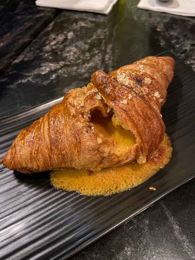 放完個農曆假開工梗係食餐好既開年飯3-course Lunch Menu $158 頭盤 - 招牌龍蝦湯流心牛角包話明signature 就緊係正~ 一切開個包就有濃濃既龍蝦湯,龍蝦湯略鹹,但配埋個包食就岩岩好,就算牛角包沾左湯都仍然鬆脆大滿足~~Main - 㰖油椒絲蒜片鳳尾蝦扁意粉對於唔嗜辣既我,呢碟意粉好好辣除左辣都食到蒜味,其他味就食唔到😅😅辣味蓋左蝦味雖然portion 好似好少,但加埋頭盤既牛角包其實好飽Main - 香煎挪威鮮三文魚兩舊魚略微細,但有啲雜菌配菜搭夠夠香口Dessert - 雜莓芝士蛋糕好creamy 既cheesecake, 加上餅乾碎口感豐富…查看更多