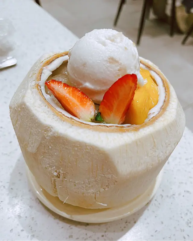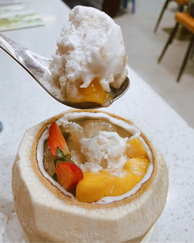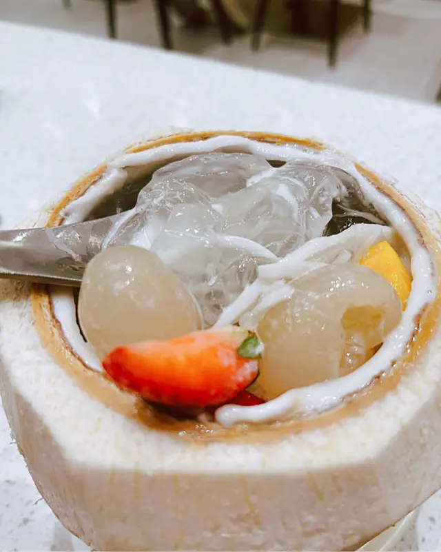 龍眼冰鮮果椰青凍 $55龍眼冰鮮果椰青凍是海記合桃坊的招牌甜品之一,結合左龍眼嘅清甜、芒果嘅酸甜和椰青凍嘅清涼口感。第一口入口,你會被融化喺口中嘅椰青凍所迷住,它帶嚟左一股清新的味覺享受。跟住你會品味到龍眼嘅甜美,呢種濃郁果香喺口中綻放,再加埋少少芒果酸甜,為呢道甜品增添了一份清爽同口感層次。當榴槤遇上芒果 $53呢款甜品結合咗兩種熱帶水果風味:榴槤+芒果。對於喜愛熱帶水果嘅人嚟講,是係一道不容錯過嘅甜品。當你品嚐第一口時,榴槤嘅濃郁香氣立刻在口中散開,榴槤獨特味道、豐富嘅口感同芒果嘅酸甜相得益彰,兩者完美融合。薑汁芝麻湯丸 $31傳統中式甜點,結合了薑汁同芝麻風味。呢款甜品的湯丸外皮Q彈有嚼勁,內餡以芝麻為主,搭配薑汁微辣同清新。第一口入口,你會感受到湯丸外皮口感,咀嚼時釋放出芝麻香氣令。而當你咬開湯丸時,薑汁的微辣感同芝麻香濃完美結合,帶嚟一種獨特嘅味覺體驗。…查看更多