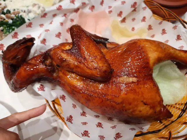 帶上手套, 手執剪刀, 開始食雞! 先折下雞翼, 再拆出雞肶. 拆開雞翼和雞肶時, 滴出很多雞汁和雞油. 為了不浪費, 先把雞肶放在青菜上, 青菜有了雞油和雞汁, 會更美味. 再來到雞身了! 直接剝開雞胸的皮, 雞胸皮在烤過後没有多餘脂肪, 可放心直接享用呢! 雞皮真的很香呀! 雞胸肉不太硬, 但剛出爐熱辣辣, 可以輕易以手撕開雞胸肉, 雞胸肉的肉質依然嫩滑. 雞胸肉脂肪率不高, 是減肥人仕恩物. 但自己喜歡雞胸肉連雞皮一同享用, 有雞肉香也有雞皮香, 以雞油來潤澤雞胸肉, 正! 減肥? 食埋今餐先至算啦! 最後來到雞上肶和雞翼了!這個部份應該附有最多的醃料. 但是這次1蚊雞的鹹度適中! 消滅1蚊雞後無需狂飲水! 跟2019年勁鹹的1蚊雞相比, 2020的1蚊雞在週味上是有改善. 亦可能是 = 自己剛好遇上醃料不多的1蚊雞! 始終在食物加工場裡, 一大缸的醃料, 會放入很多隻雞, 醃料分佈不平均也很常見! 幸好這次遇上不太鹹的1蚊雞! 氣鍋海中寶 每人一盅, 放在枱面, 陣容虛冚. 海中寶, 有鮑魚, 螺肉, 豬肉, 雞件和由多塊細小魚鰾組合壓成一餅的魚肚. 燉湯清甜, 就連最怕飲中湯的小米都把燉湯飲光! 小米真咀刁! 金銀蛋青菜 嚐過肥美的雞, 來一份青菜才算健康. 加上有雞油雞肉精華的加持, 當然美味. 今晚盛惠2舊几水, 平均每人五六十蚊. 抵!!!! …查看更多
