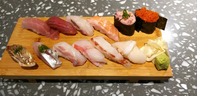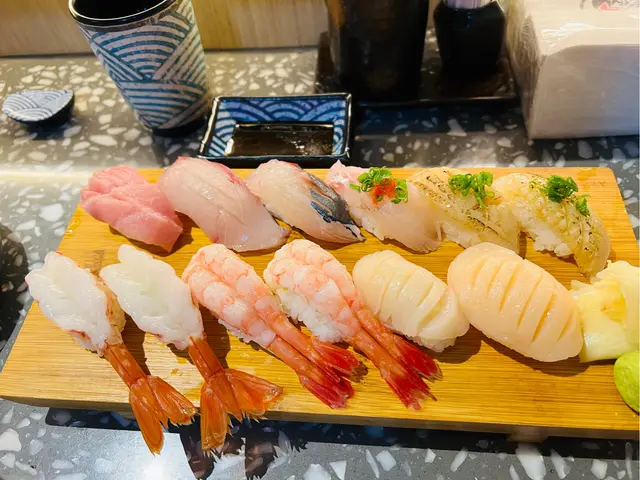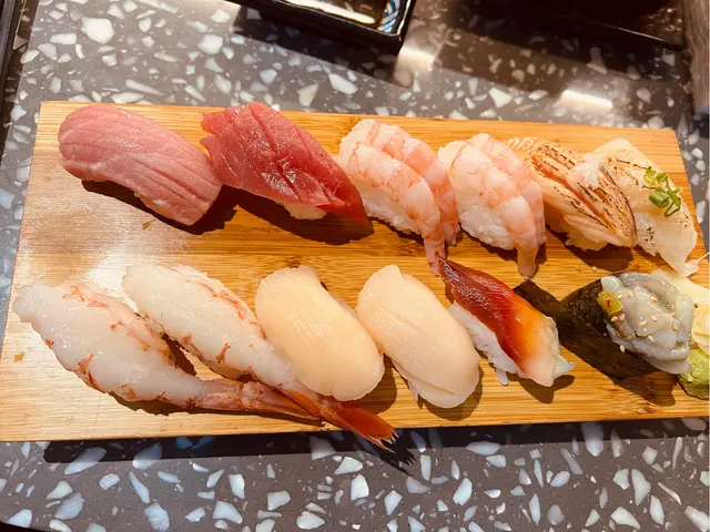 8點鐘嚟到唔使等位,座位唔係好多,得吧枱10幾個位,諗住快食,冇乜期望,點知有驚喜😆兩個人食咗32件壽司都係$700幾埋單😄 今日特別想食壽司,見有自選壽司,就冇嗌到Omakase,食完好滿足😙坐低職員就上咗一份小食(枝豆),自己寫紙落單交俾職員,壽司即嗌即整,有幾位壽司師傅,上菜速度都算快,每位師傅都有唔同切法,有唔同體驗😁上菜時師傅都會介紹推薦食用次序👍🏻—————————————————————•螢光魷魚🦑$68 有5️⃣隻熟嘅螢光魷魚仔,唔會腥,細細隻每隻都好飽滿,但對比起壽司,呢樣就有少少唔抵食⭐️8️⃣件火灸壽司盛🔥🍣$188 有7️⃣款魚+1️⃣件帶子火炙過嘅壽司魚油更香,燒到少少熟啱晒唔食生嘢嘅朋友🔥吞拿魚腩,吞拿魚面頰肉,左口魚邊🔥呢3款都好有魚油香,入口即化,食完都唔會”漏”😋👍🏻•12件自選壽司🍣$198 嗌咗兩次😆😋吞拿魚腩入口即溶🤩🦐甜蝦都算大隻,好鮮甜新鮮帶子鮮甜爽口👍🏻🦐赤蝦好大隻夠晒彈牙🔥火炙左口魚邊好香魚油,入口即化😋👆🏻👆🏻👆🏻呢5款都可Encore👇🏻👇🏻👇🏻🤩…查看更多