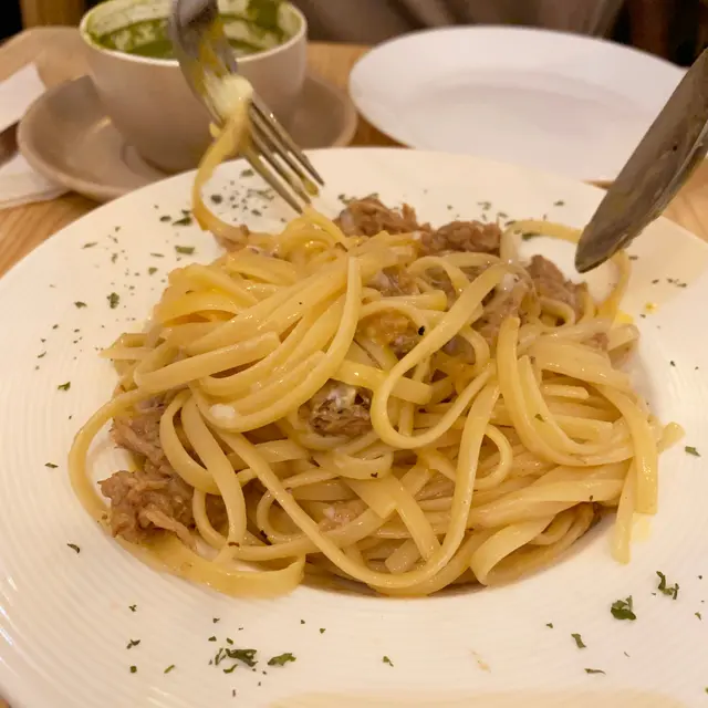 佢地留意到每一個客人既需要~會見到我地食完就即刻收走d碟佢,同會好細心咁介紹每一道既餸同點樣食法!我同朋友叫咗2個set dinner!粟米忌廉湯粟米忌廉湯好濃旭, 絕對唔係罐頭湯!!慢煮雞胸沙律雞肉好林~又大大塊48小時慢煮煙燻手撕豬溫泉蛋扁意粉煙燻手撕豬配埋溫泉蛋一齊食, 係勁夾~ 成個味出晒黎~ 唔會淡呀! 慢煮安格斯封門柳(12oz)伴薯蓉佐阿根廷青醬(***推介)安格斯封門柳好嫩, 牛味好濃 仲要食落好林, 再加埋佢地自家制既醬汁~好fresh, 唔會覺得好”heavy”既感覺~