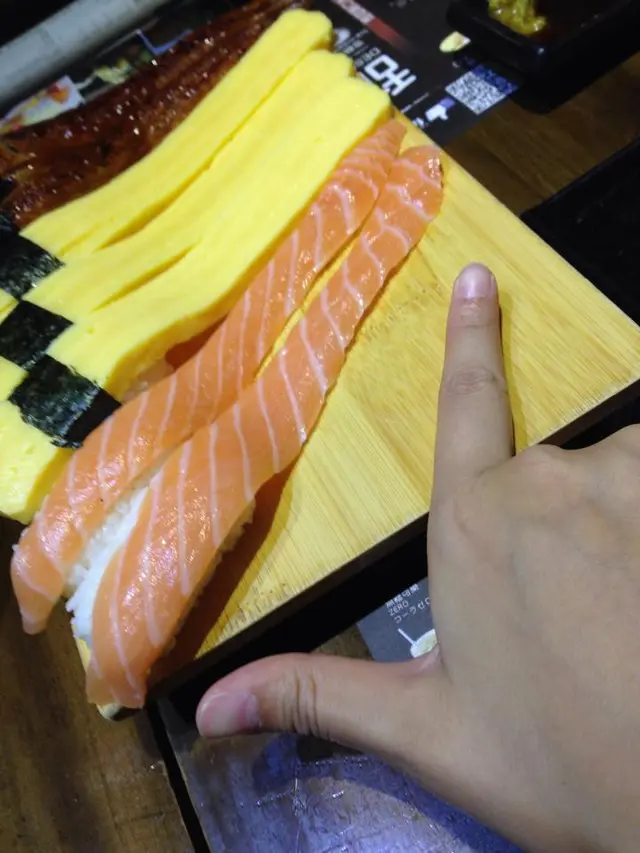 三文魚很薄,不太鮮。但海膽壽司很大,很甜味
